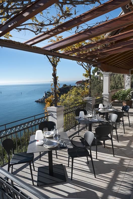 Abby ist ohne Armlehnen bis zu 6x stapelbar. Mit Armlehnen ist Abby bis zu 4x stapelbar. Abby ist auch für den Außenbereich geeignet