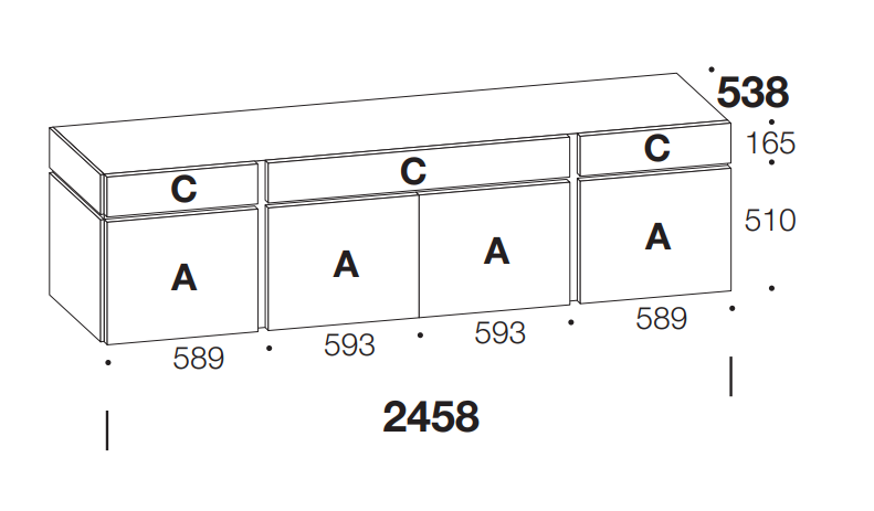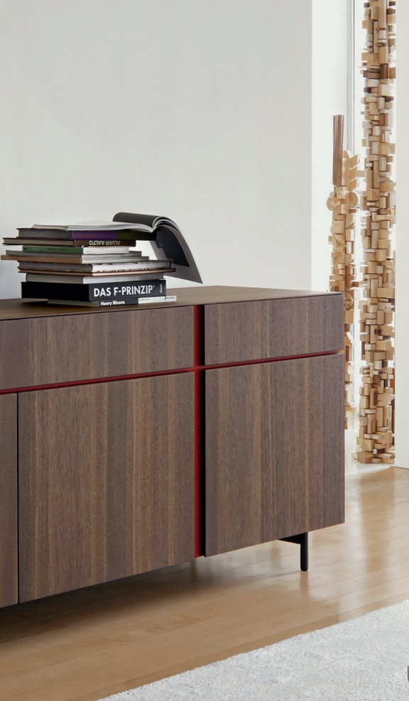Adamo large ist eine Kombination von Schubladen und Türen, die eine Beziehungen zwischen Linien und Oberflächen die eine originelle Wirkung entfalten.