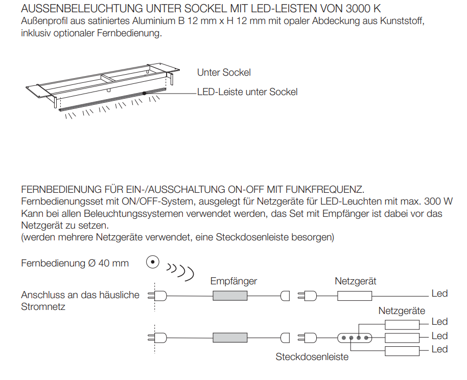 Aussenbeleuchtung unter Sockel mit LED Leisten