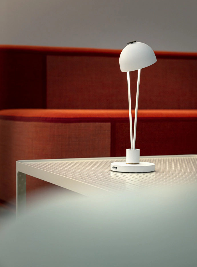 Ale BE T ist eine batteriebetriebene Tischlampe, die in jeder Umgebung zum Einsatz kommen kann, da sie kabellos ist.