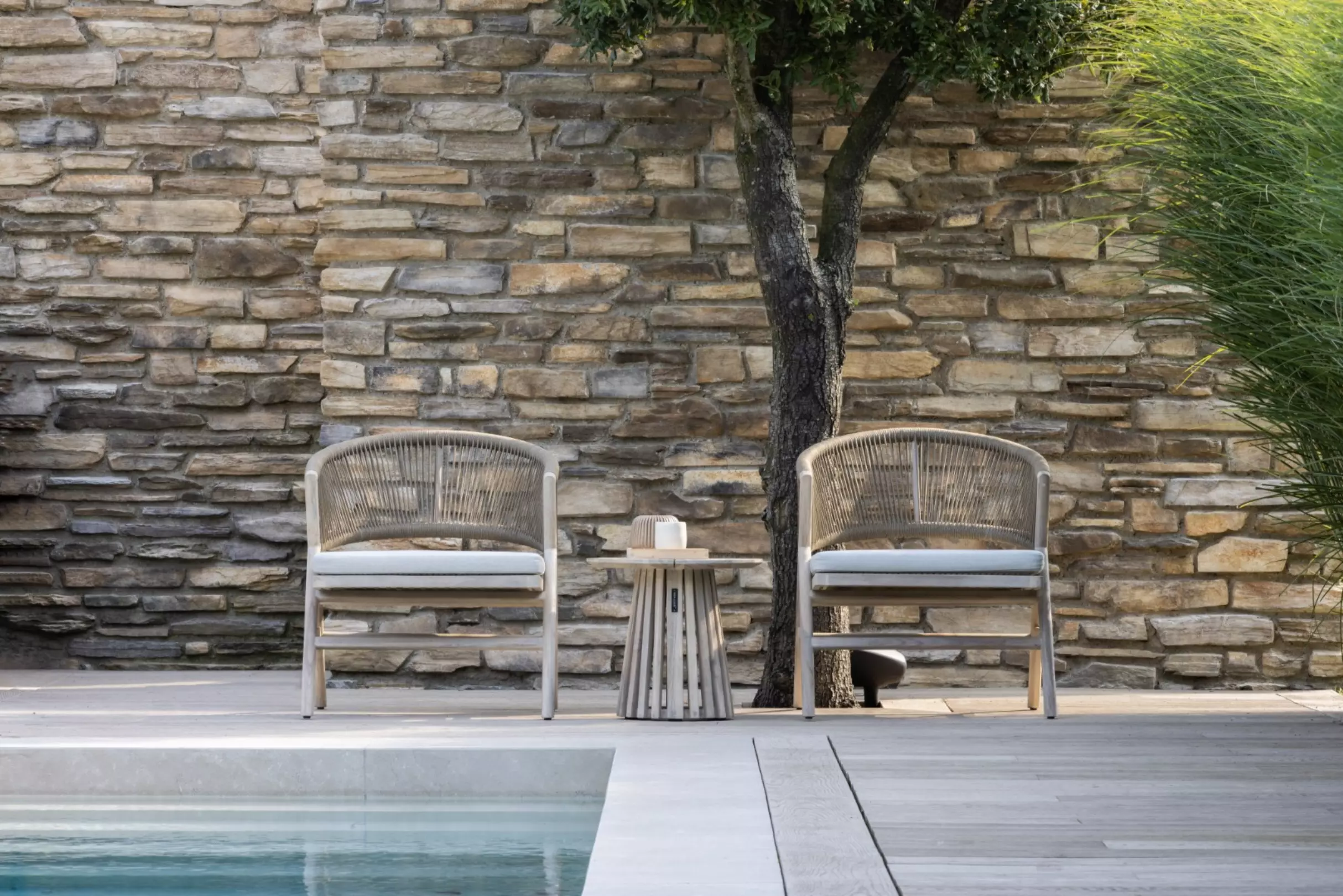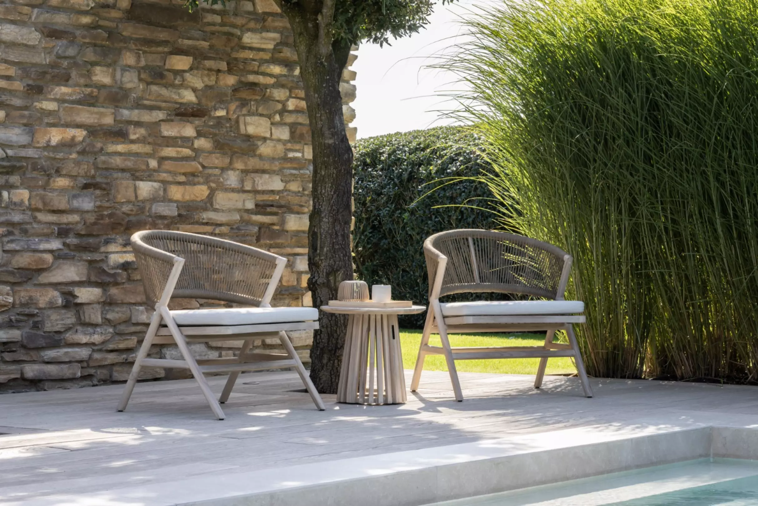 Die Vielseitigkeit dieses Materials in Kombination mit verschiedenen Flechttechniken auf pulverbeschichtetem Aluminium und verzinktem Stahl führt zu aufregenden, zeitgemäßen Designs.