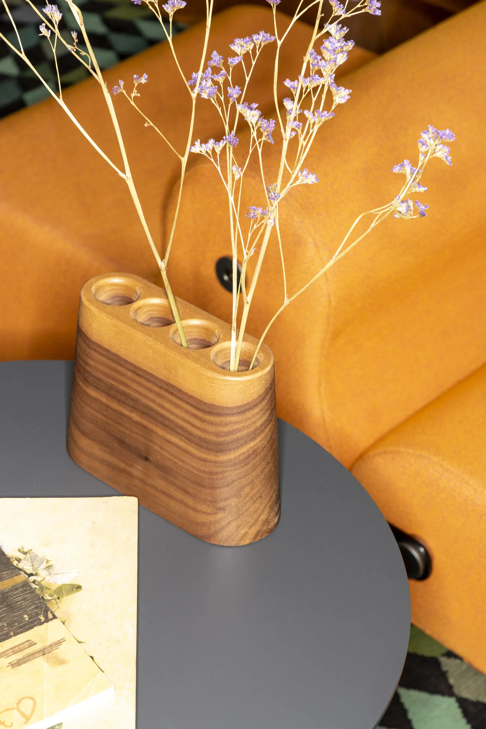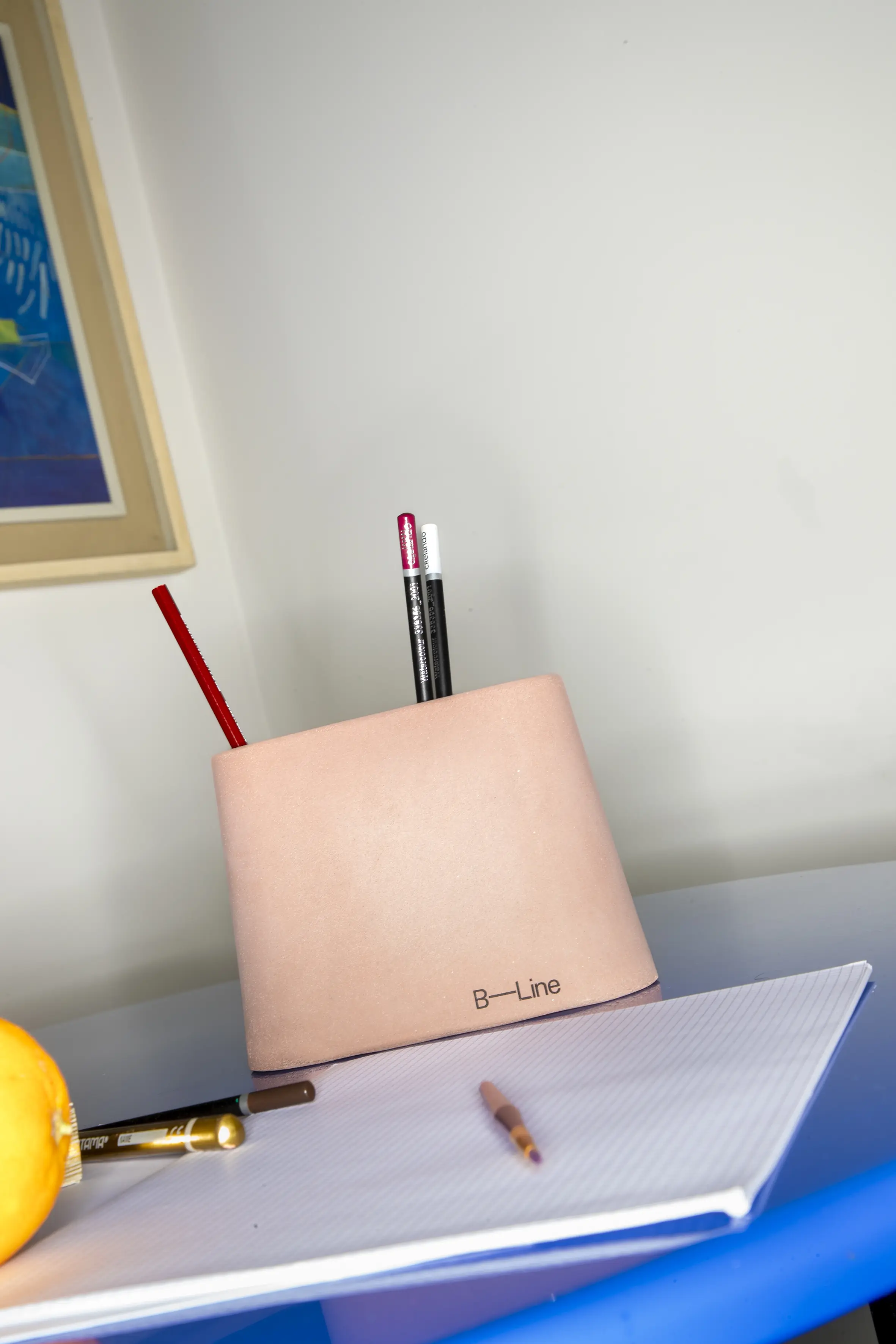 Aki Jr, die Juniorversion von Aki, behält sein Design genau bei. In dieser Mini-Variante verwandelt er sich in einen praktischen Stifthalter bwz. eine Ablage aus zwei verschiedenen Materialien: durchgefärbter Beton und Massivholz.