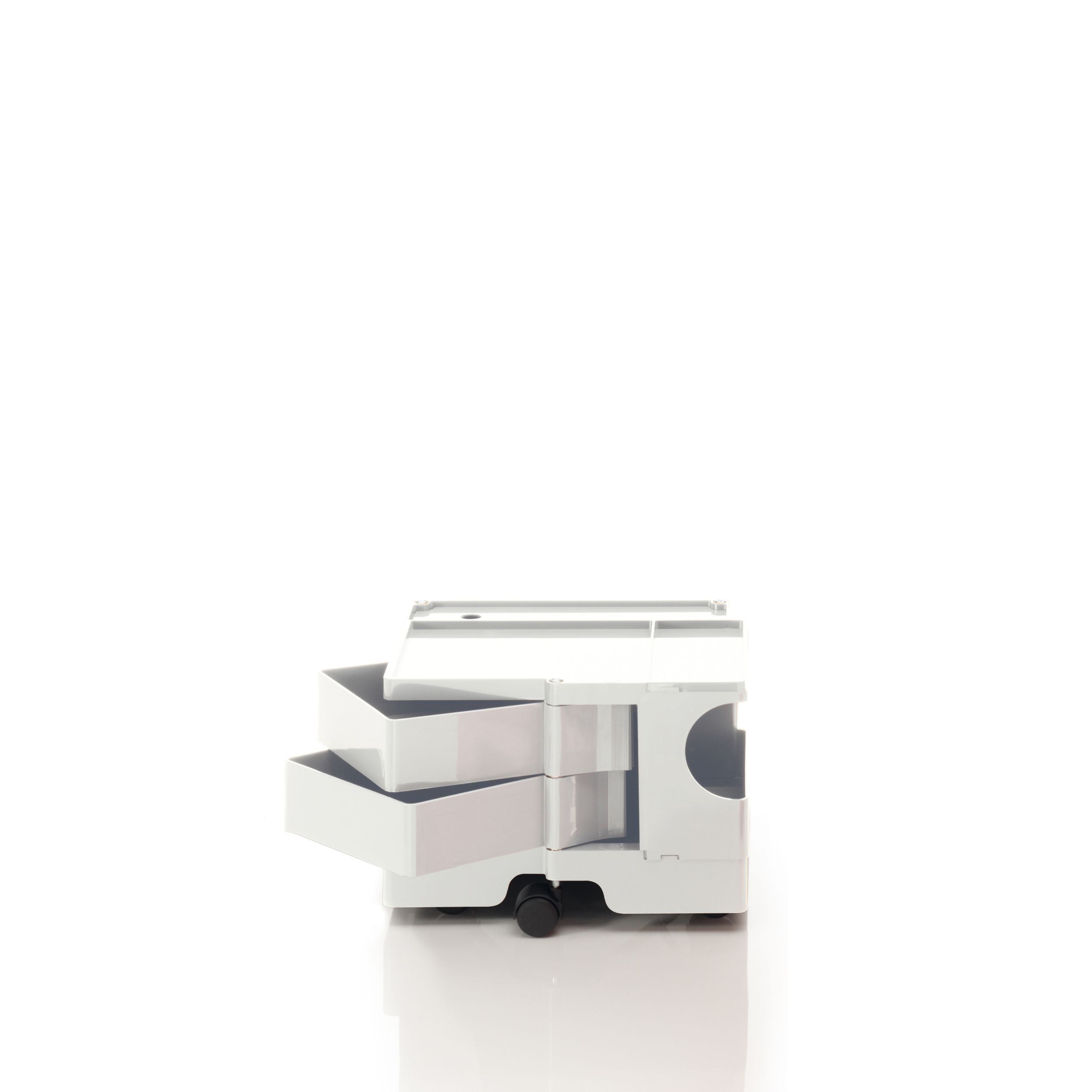 Als eines der geschichtsträchtigen Meisterwerke des Designs zeichnet sich der Rollcontainer durch seinen dynamischen Ansatz und seine beachtliche Vielseitigkeit aus. Durch sein großes Fassungsvermögen ist er nicht nur perfekt für den Zeichentisch oder ein gut sortiertes Büro, sondern überall dort einsetzbar, wo kleine Teile häufig gebraucht werden. Das Gestell aus ABS-Kunststoff bestehend aus Modulen mit Schubfächern und Böden fährt auf 5 frei drehenden Rollen. Obwohl der Joe Colombo Entwurf schon seit fast 40 Jahren von B-Line produziert wird, erfreut sich der Boby Rollcontainer nicht nur unter Architekten und Grafikern immer noch höchster Beliebtheit. Teil der ständigen Kollektion des MoMA in New York und der Triennale in Mailand, Smau-Preis 1971.