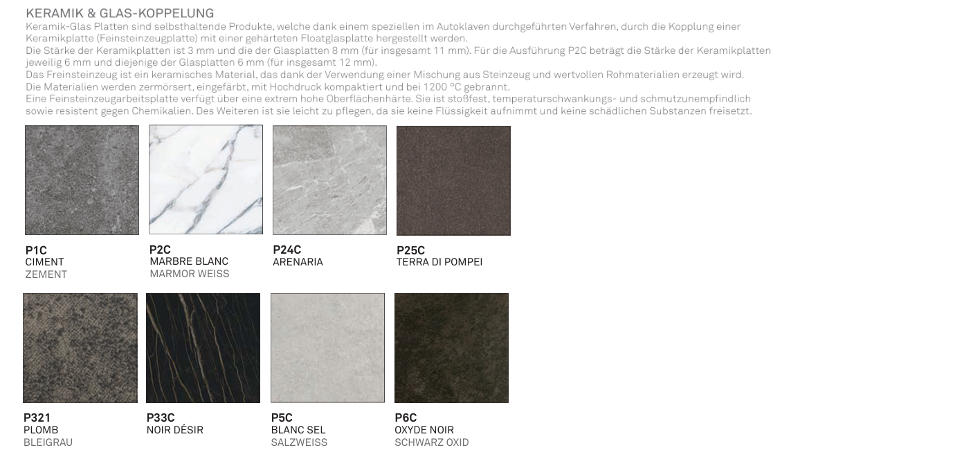 Tischplatte Keramik Bleigrau, Zement, Salzweiß, Schwarz Oxid, Arenaria, Terra di Pompei, Noir Désire oder Mamor Weiß