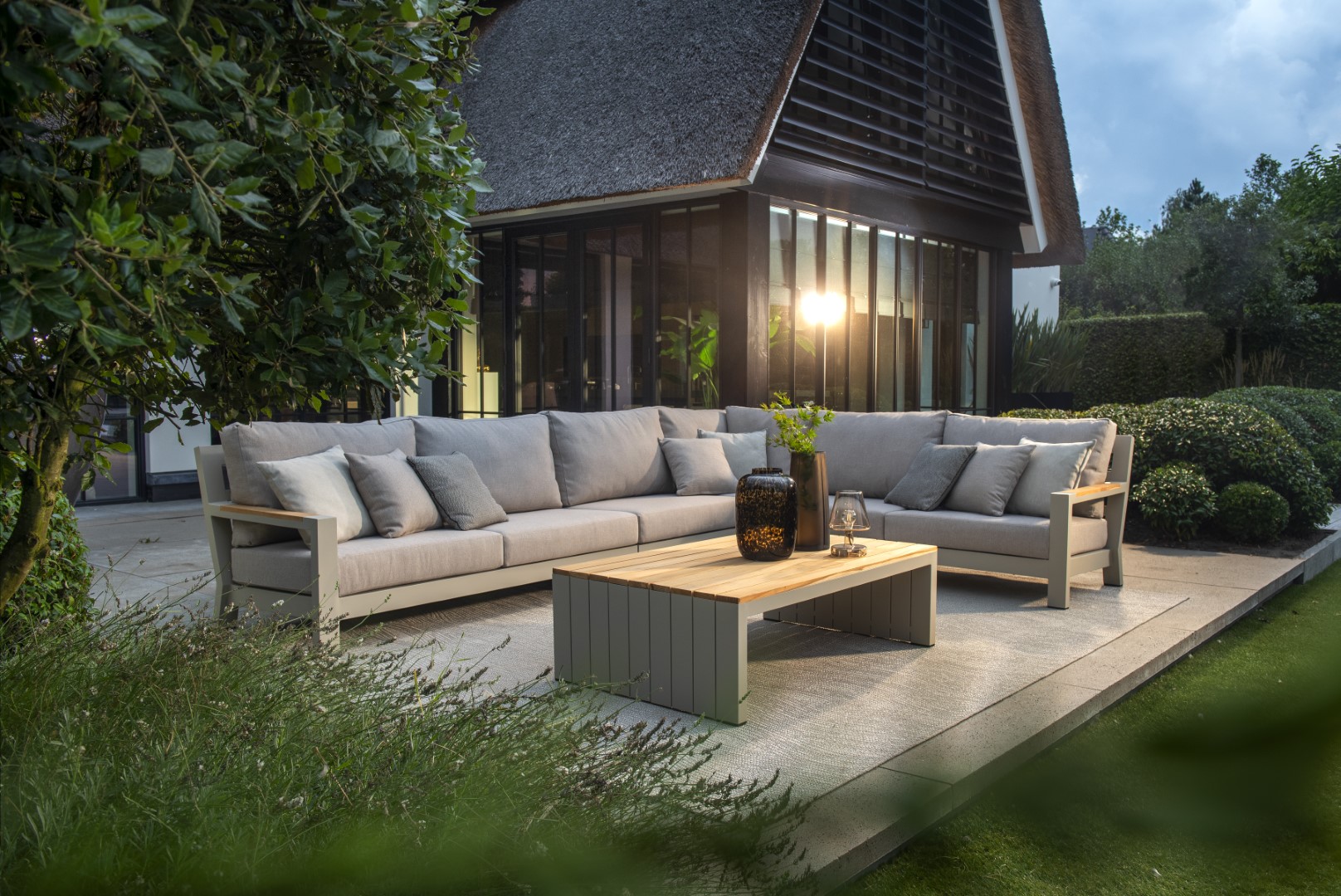 Die Outdoor Lounge Ecke Bagno von Yoi vereint Stil, Komfort und Funktionalität und schafft so den perfekten Ort zum Entspannen und Genießen im Freien.
