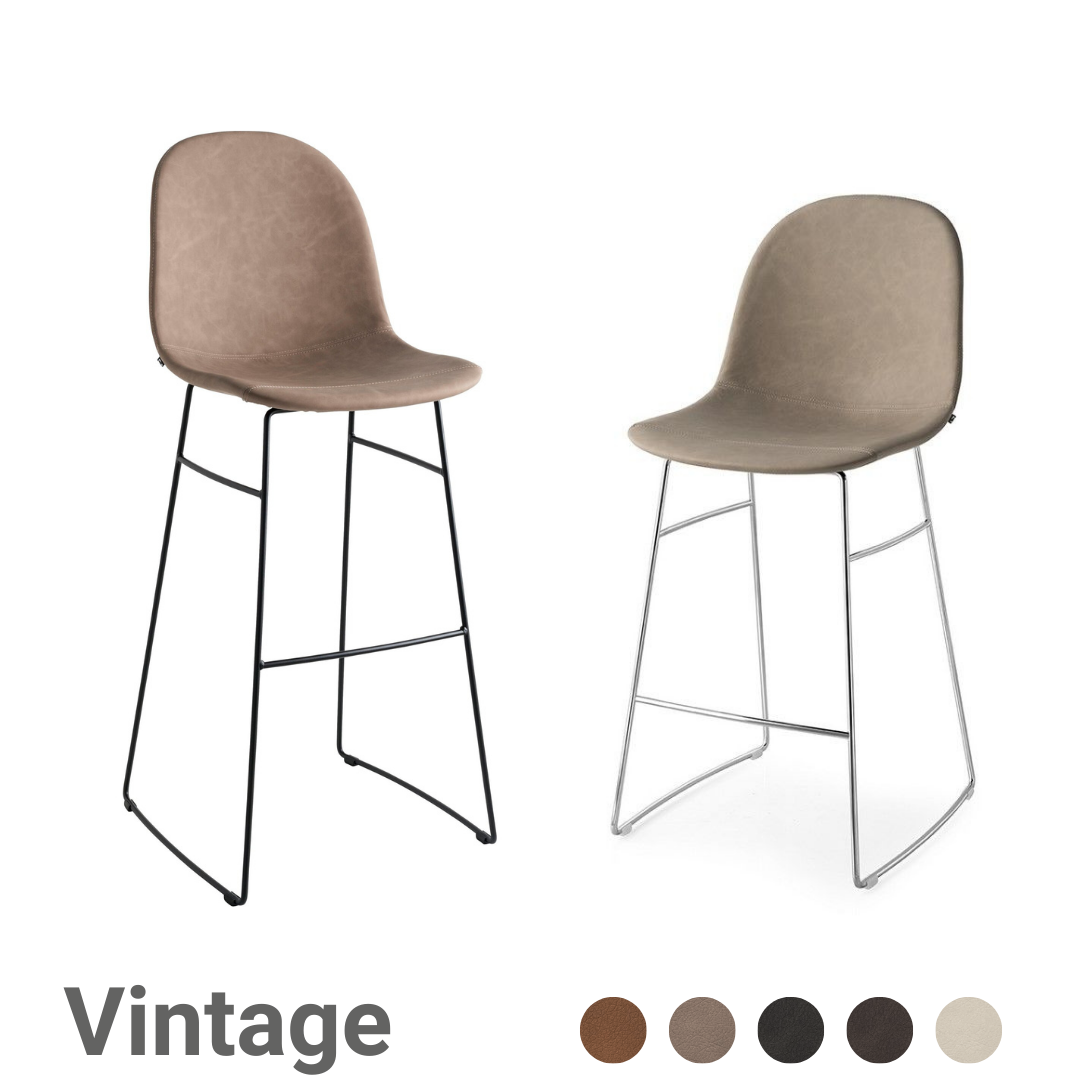 Der Hocker ACADEMY besitzt ein Gestell aus verchromten Metall und eine Sitzschale bezogen mit Vintage im "used look". Die Sitzfläche ist Ausdruck einer Formensuche, die schlichte und geschwungene Linien aufgreift. Dieser Barhocker ist ideal für jedes Ambiente und jede Situation.