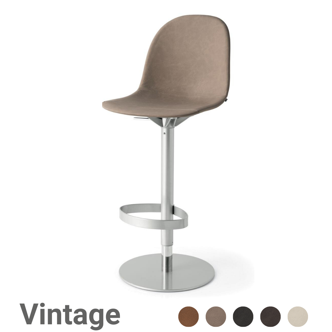 Der Hocker ACADEMY besitzt ein Gestell aus Metall und eine mit Vintage bezogene Sitzschale im "used look". Ein moderner und stabiler Hocker mit einem Gestell aus Metallrohr, einer höhenverstellbaren Säule mit Gasdruckfeder und einer ovalen Fußstütze. Die Sitzfläche ist Ausdruck einer Formensuche, die schlichte und geschwungene Linien aufgreift. Ein Barhocker ideal für jedes Ambiente und jede Situation. Konfigurieren Sie ihn ganz nach Ihren Vorstellungen.