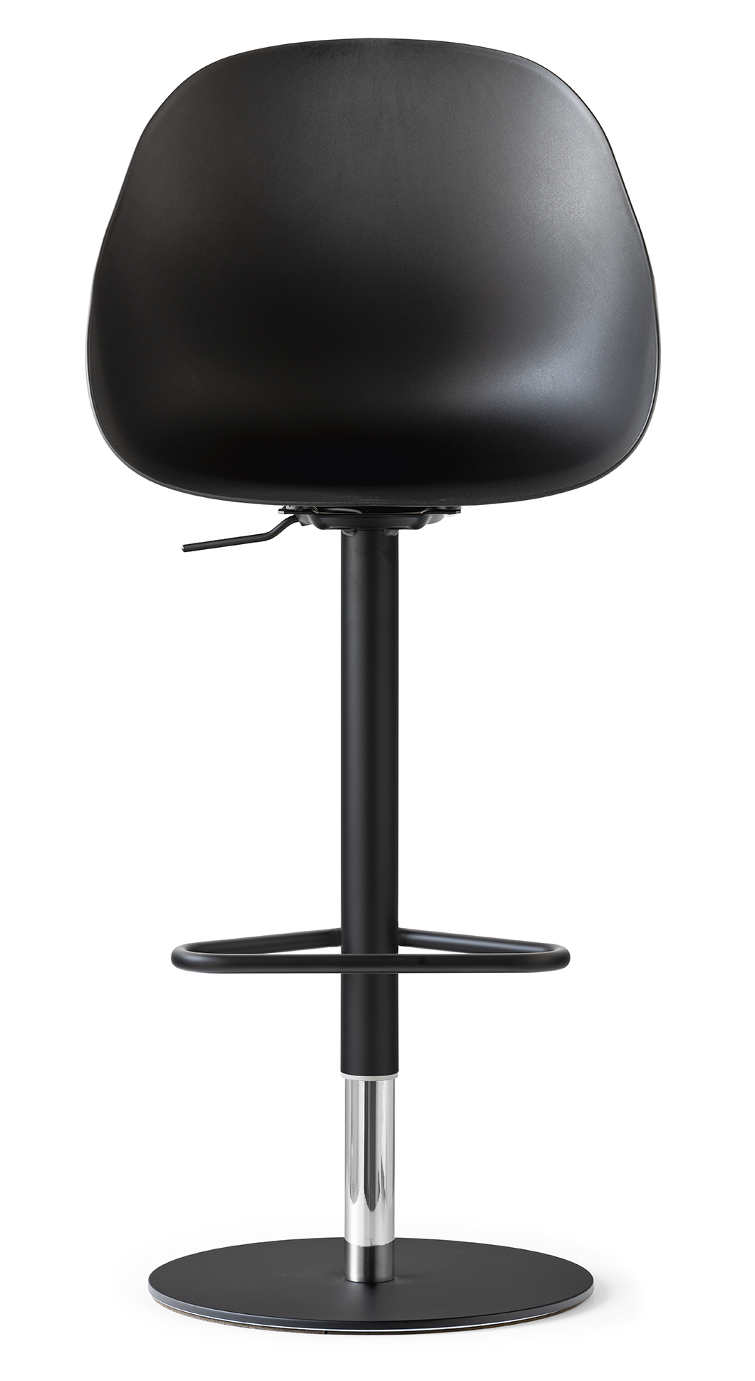 Er besteht aus recyceltem Polypropylen in vielen Farbausführungen und hat ein höhenverstellbares Gestell mit leichtgängigem Gaslift und stabilem Sockel mit Ballast.