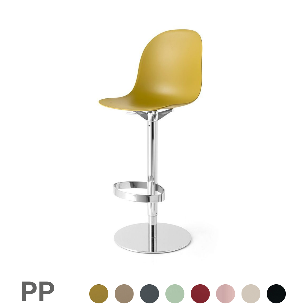 Der Hocker ACADEMY besitzt ein Gestell aus Metall und eine Sitzschale aus Polypropylen. Ein moderner und stabiler Barhocker, 360° drehbar, mit einer höhenverstellbaren Säule mit Gasdruckfeder und einer ovalen Fußstütze. Der schwere Fuß garantiert einen sicheren Stand. Die Sitzfläche ist Ausdruck einer Formensuche, die schlichte und geschwungene Linien aufgreift. Ein Barhocker ideal für jedes Ambiente und jede Situation.