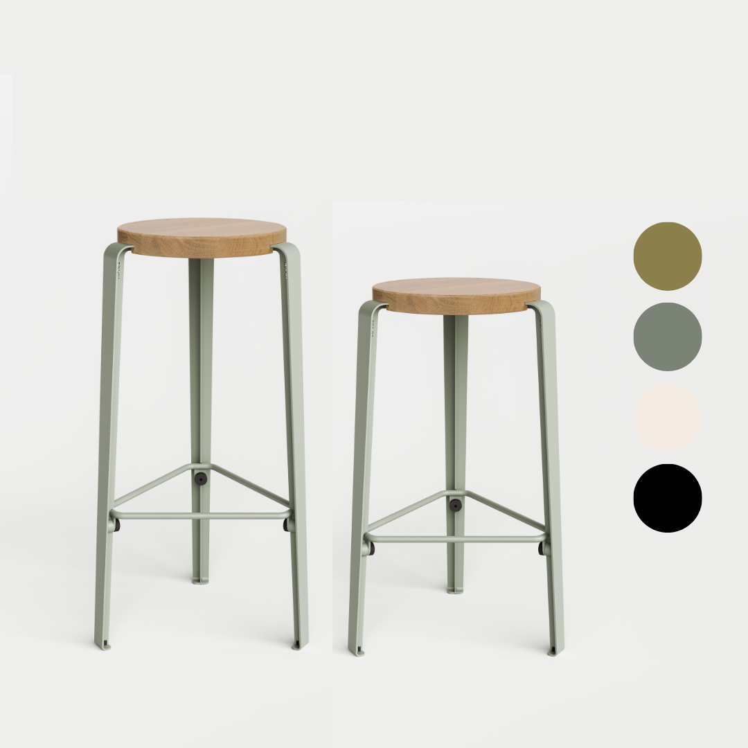 Der Barhocker LOU wird zu 100 % in Europa hergestellt und ist erhältlich in 2 Höhen: 65cm oder 75 cm Sitzhöhe.