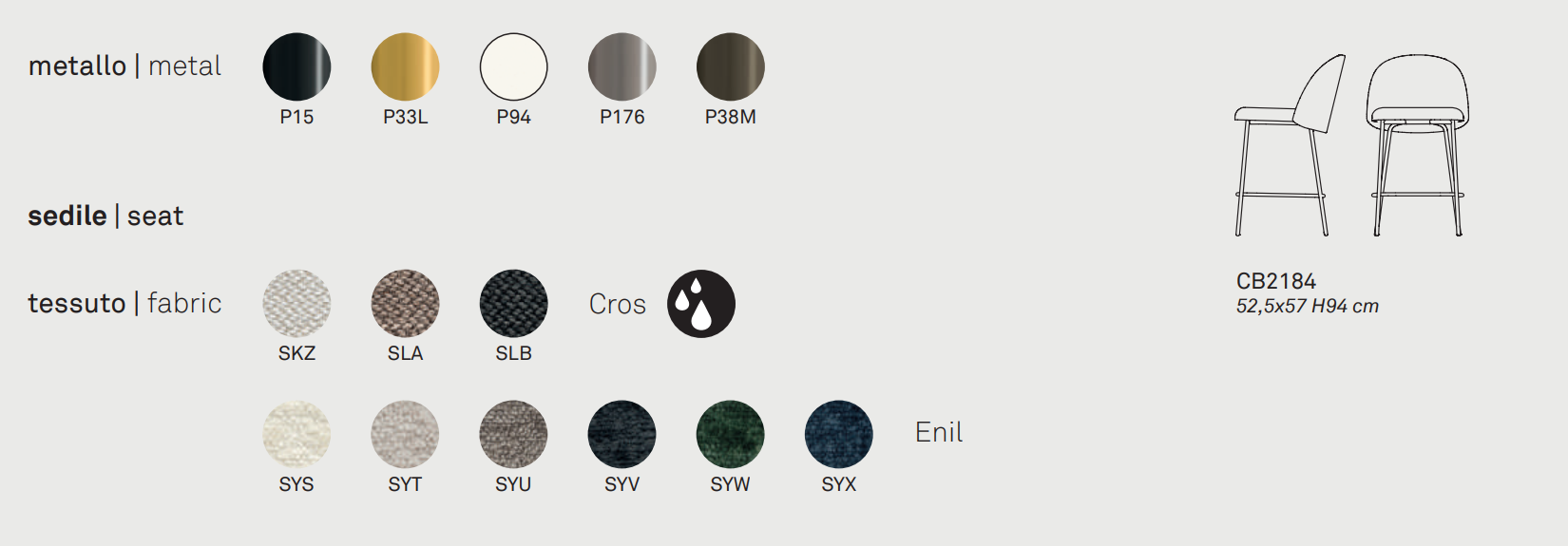 Sitz gepolstert und bezogen mit ENIL oder CROS Möbelstoff