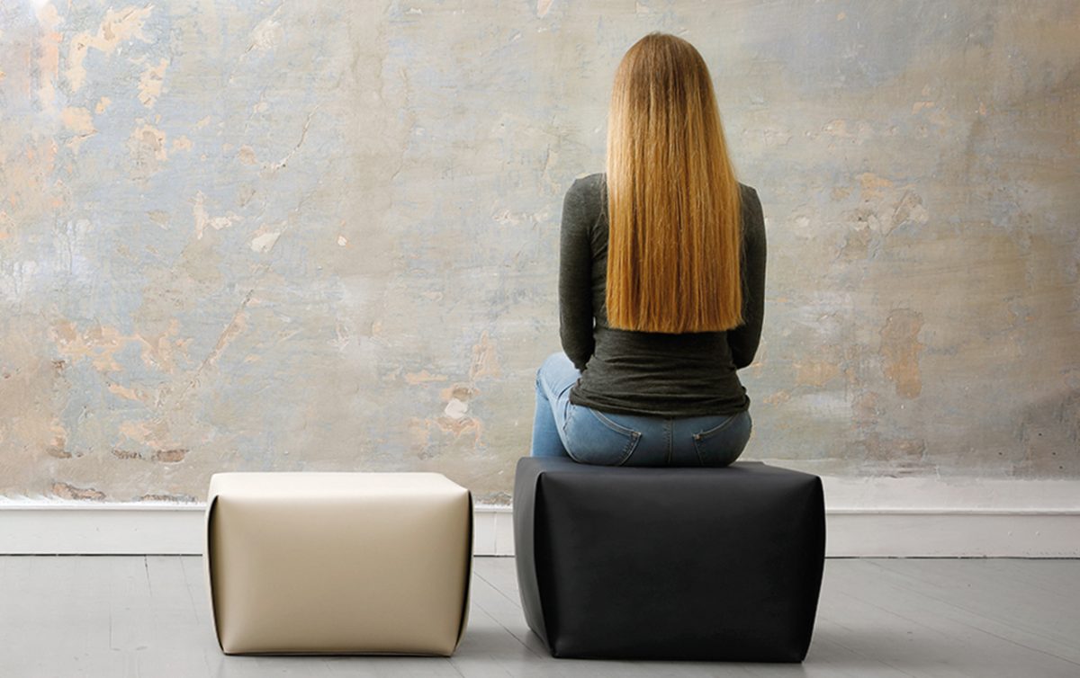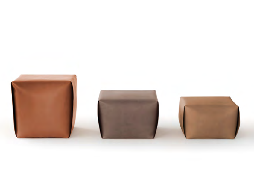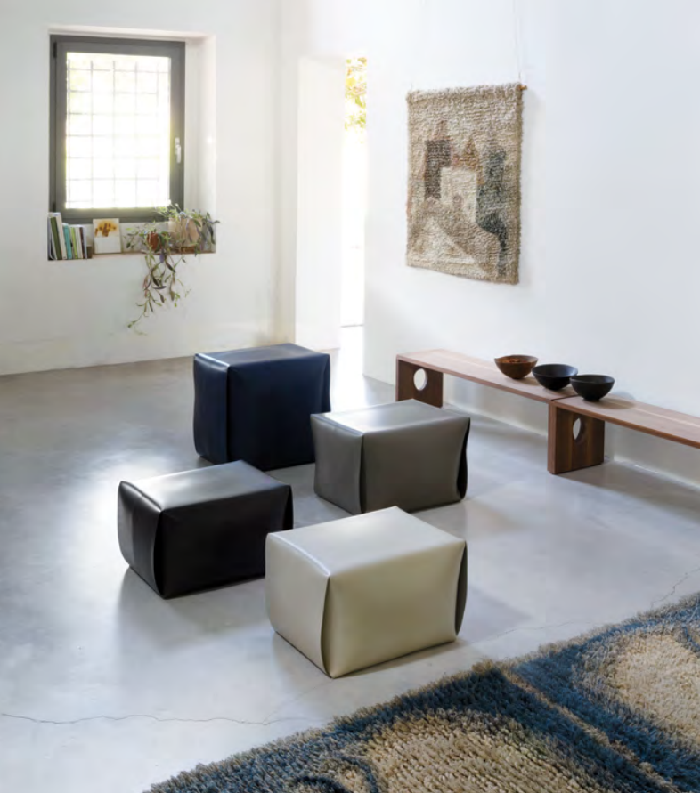 Aus dieser Idee entsteht eine Kollektion von Poufs mit der gleichen Form, aber unterschiedlichen Größen: