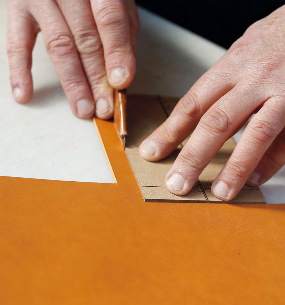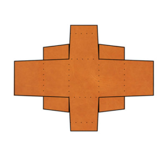 Aus einer einzigen Lederseite gefertigt, die sich selbst faltet, verwandeln sich diese zweidimensionalen Objekte in dreidimensionale und werden durch Nähte, Reißverschlüsse oder Magneten in ihrer Form fixiert.