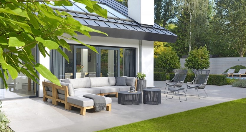 Die Tische der Kollektion Tarifa werden aus recyceltem Teakholz