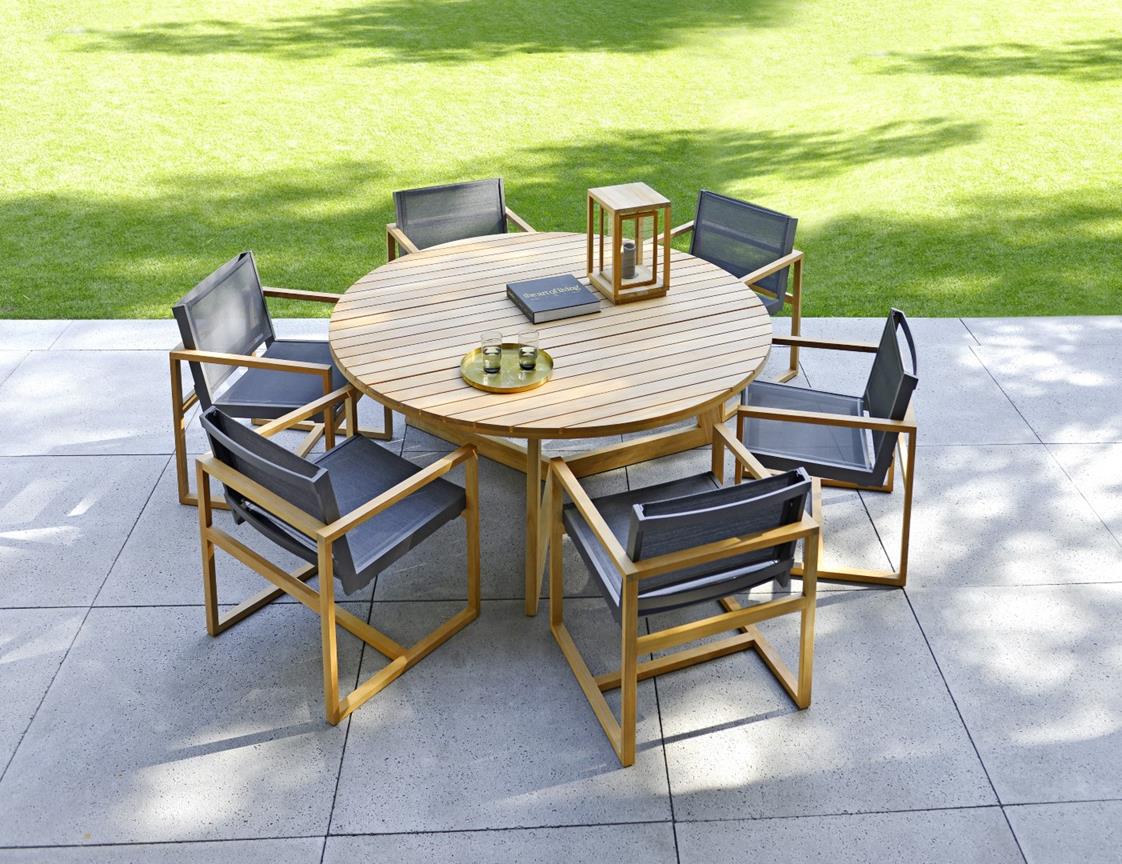 Der runde Bowie mit einem Durchmesser von 140 cm bietet bequem Platz für sechs Personen.