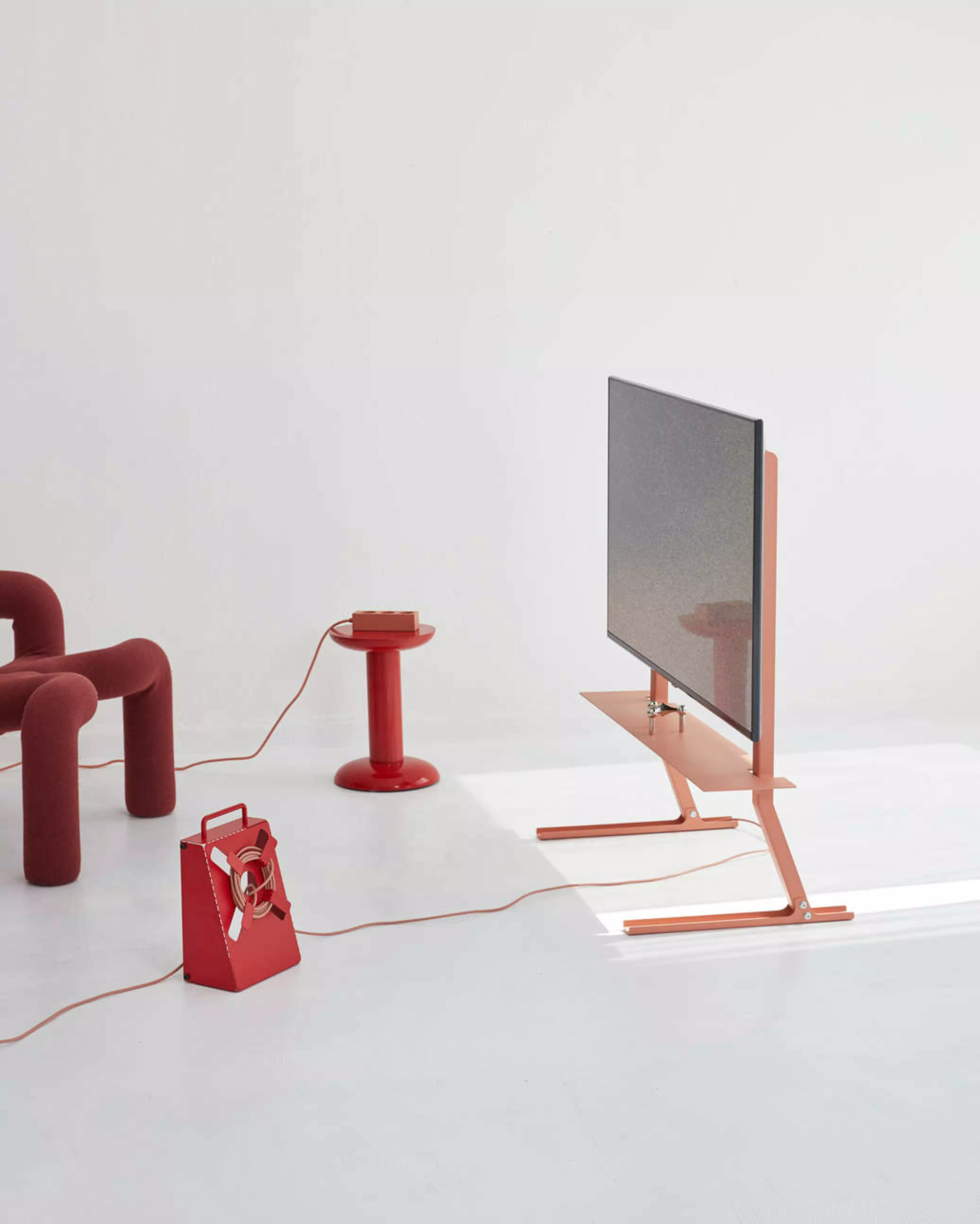 Der Cable Stand ist aus magnetisch pulverbeschichtetem Stahl gefertigt und hat eine matte Oberfläche