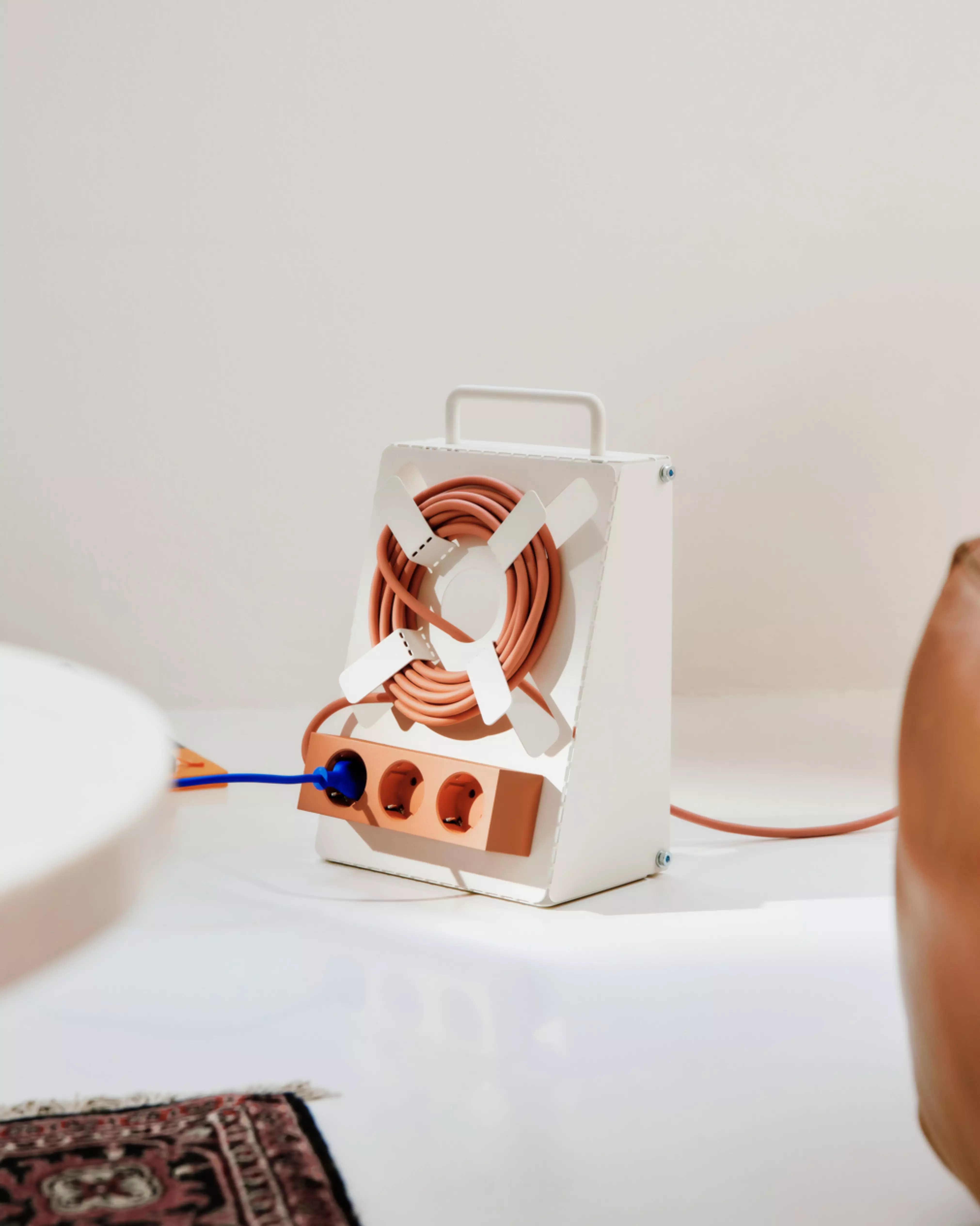 Der Cable Stand ist ein Designelement, mit dem du das Kabel deiner Power Bar oder jedes andere Kabel, das du hast, präsentieren und organisieren kannst.