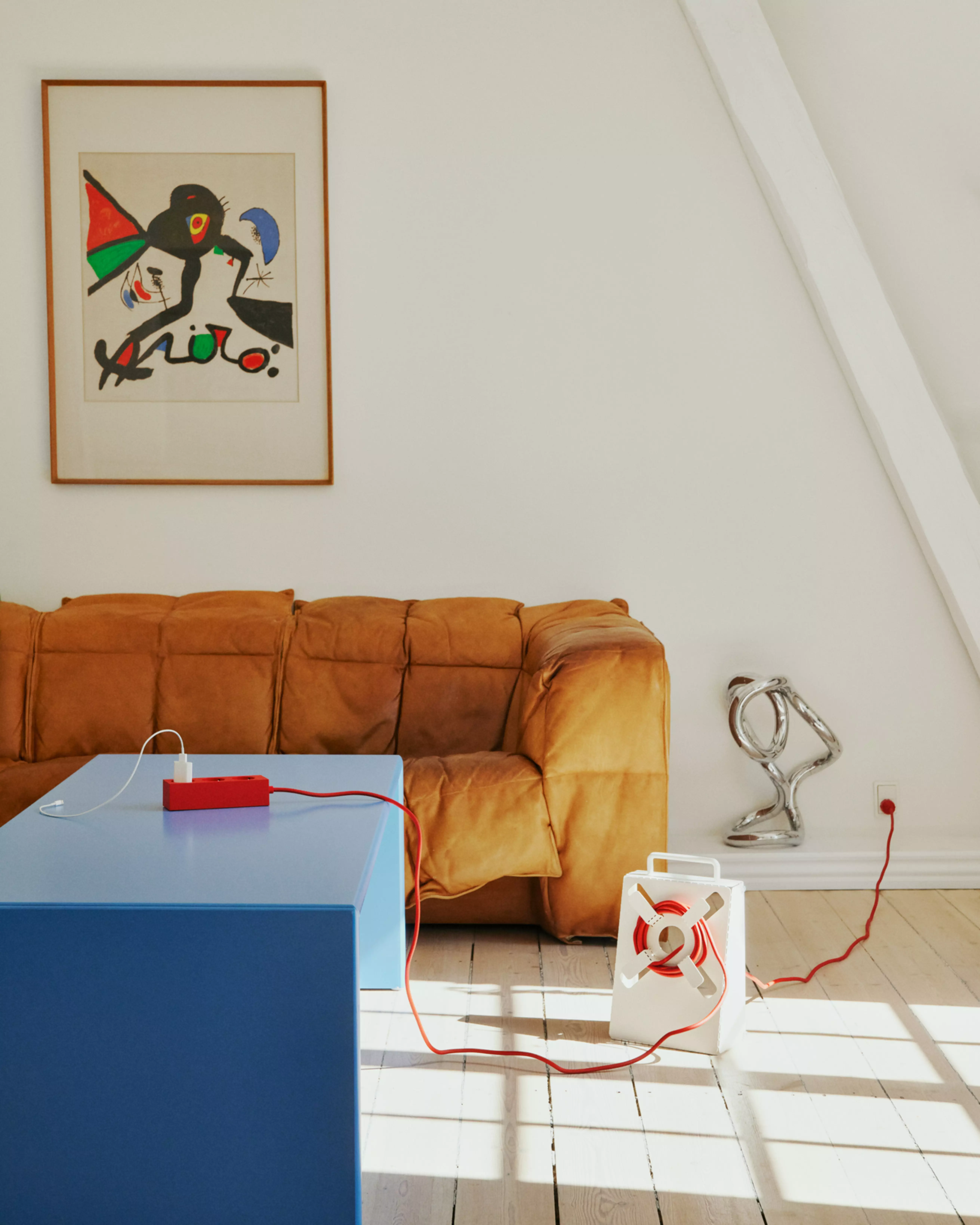 Der Cable Stand ist in fünf Farben erhältlich: Charcoal, Pearl, Ultra Marine, Fire Red und Dusty Rose.