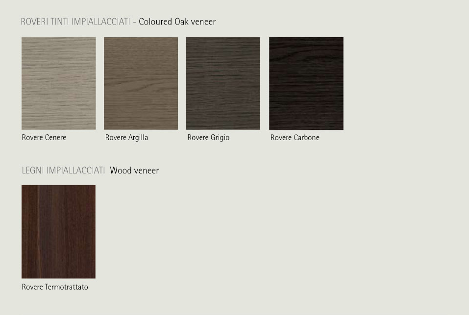 Der Korpus ist in Nussbaum gestaltet, zwei Abdeckplatten aus Keramik in der Farbe Noir Desire.