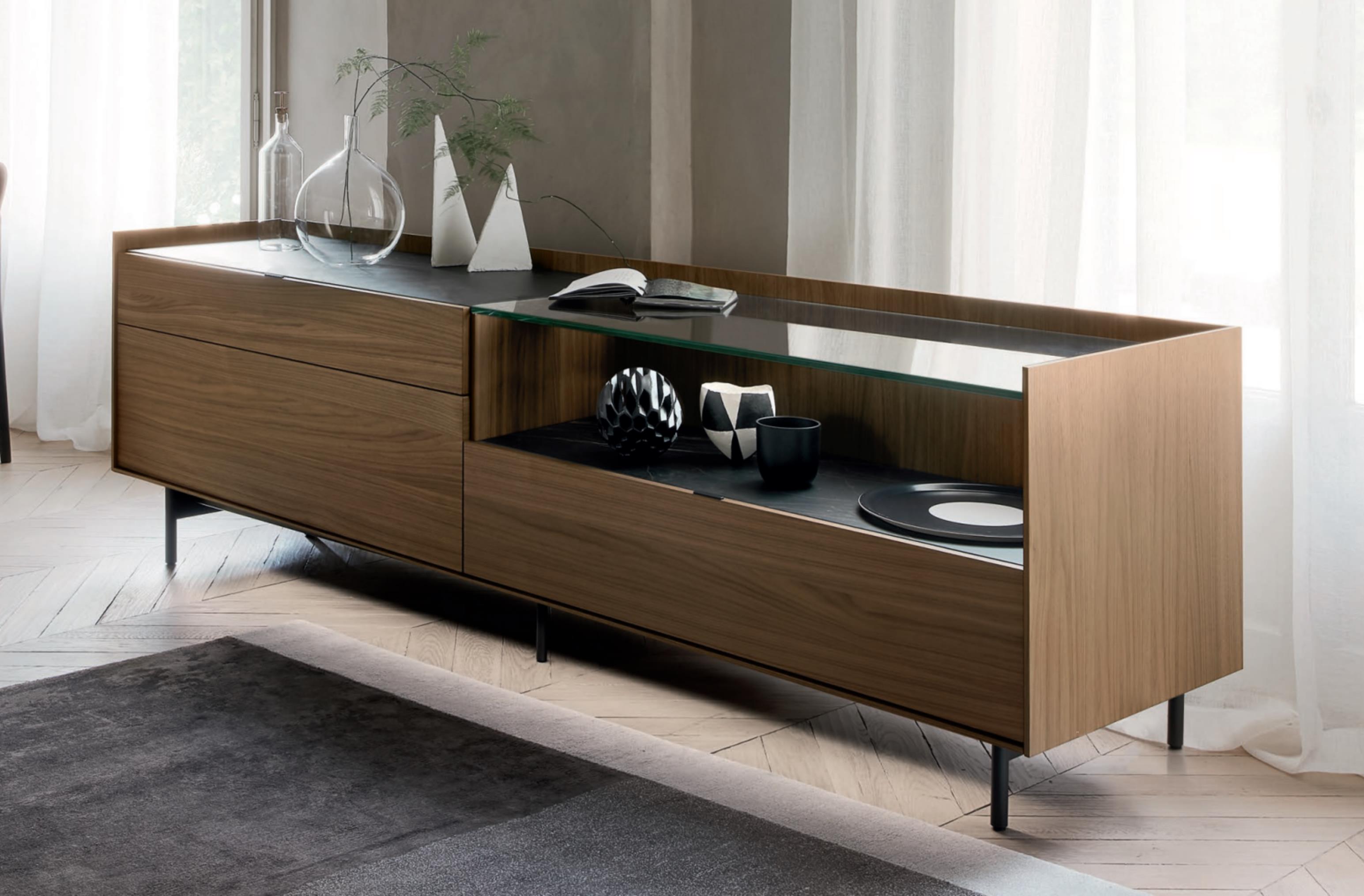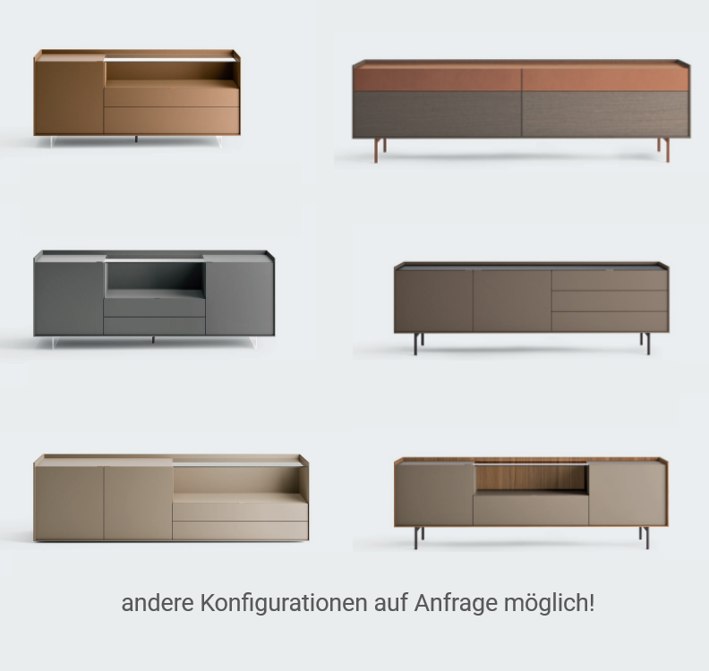 Callisto Sideboards können mit Füßen, bodennah oder wandmontiert bestellt werden.