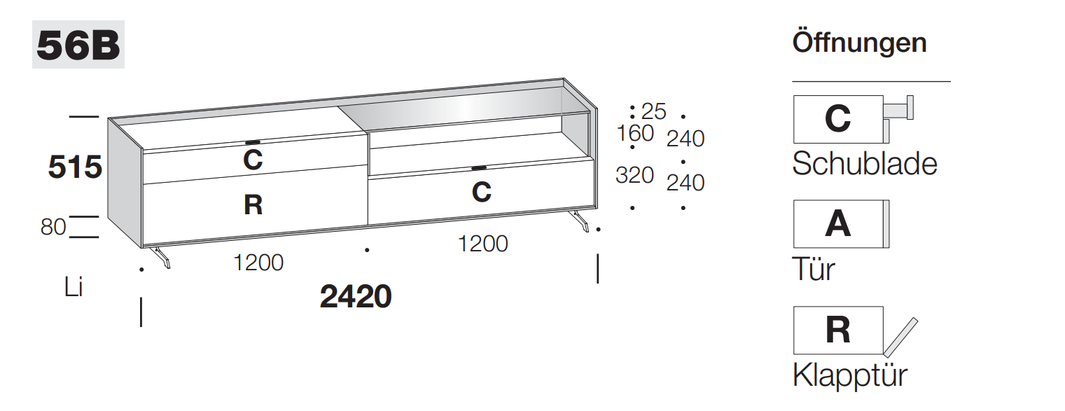 Höhe offenes Fach 24 cm