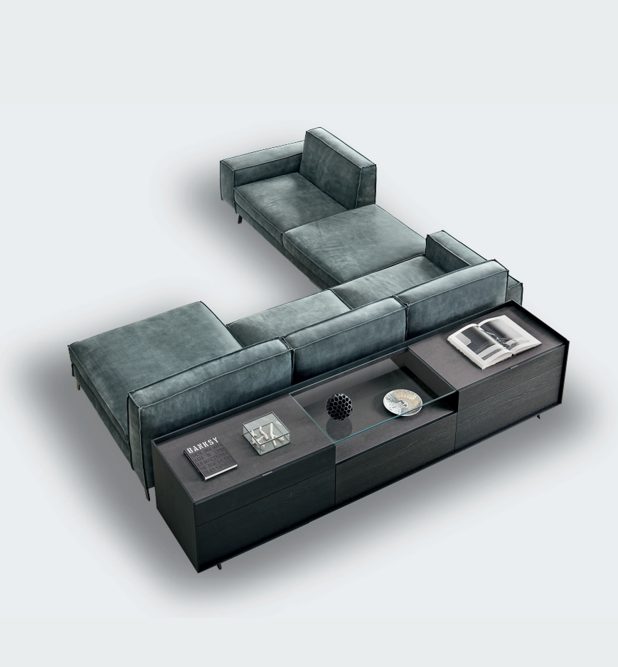 Mit seinem 10 mm dicken Umfang hat Callisto eine Eleganz, die klassisch, aber immer im Trend liegt, indem es eine Kombination aus Volumen, Glasoberflächen und offenen Fächern nutzt.