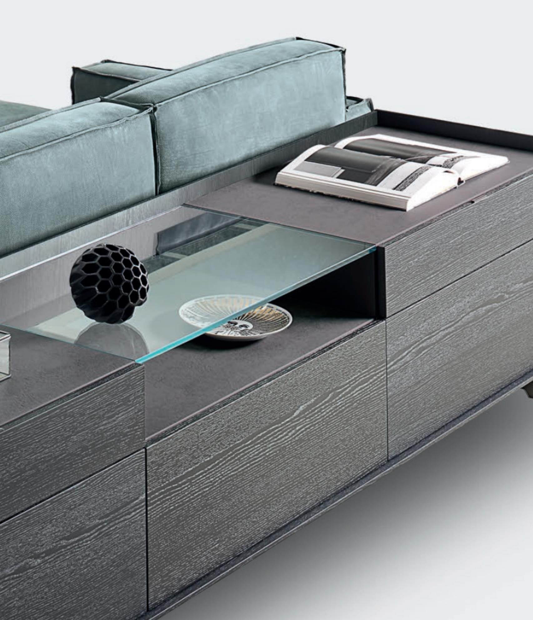 Hochwertige Details wie Keramikplatten als Abschluss und Glaselemente geben der Kollektion ein distinguiertes, elegantes Erscheinungsbild.