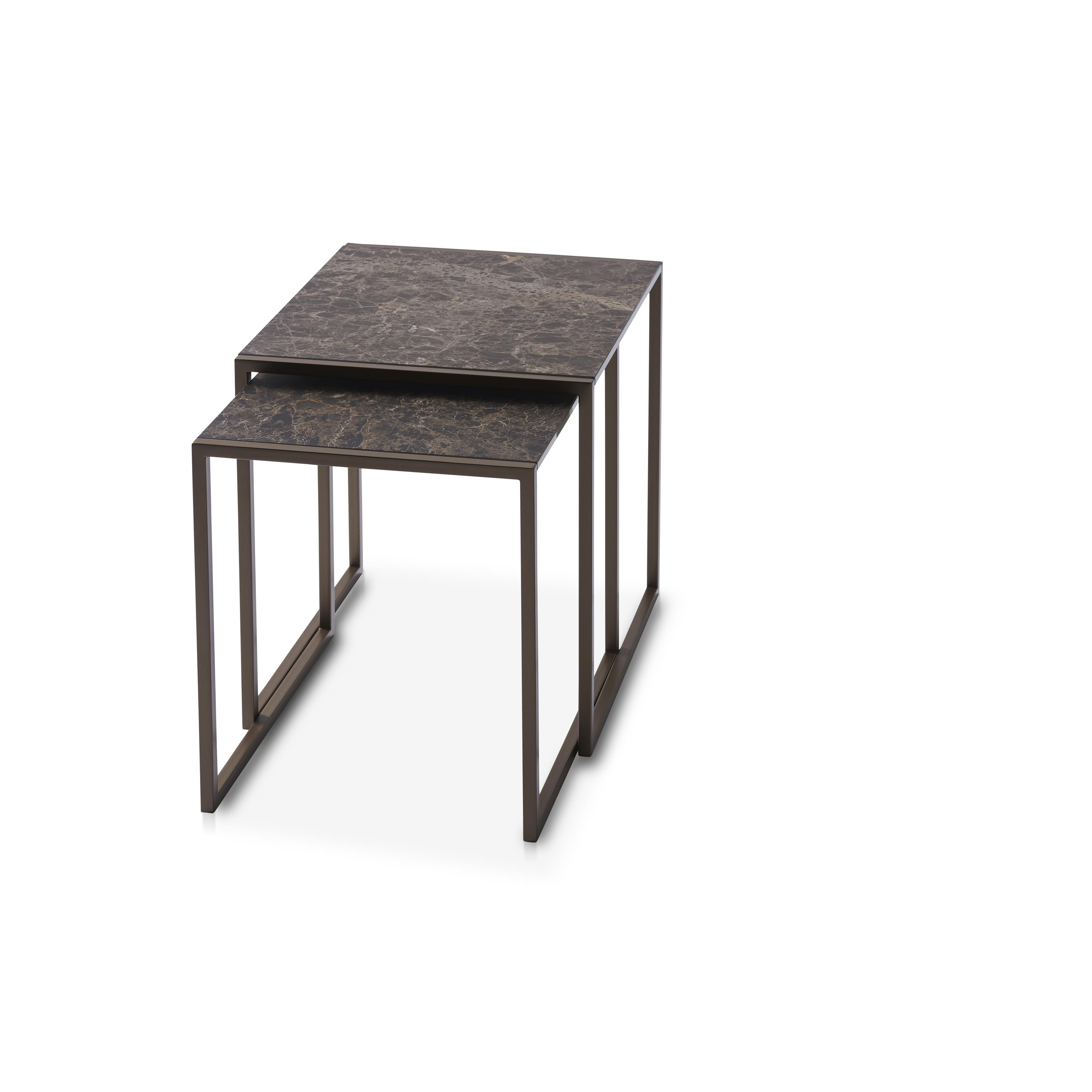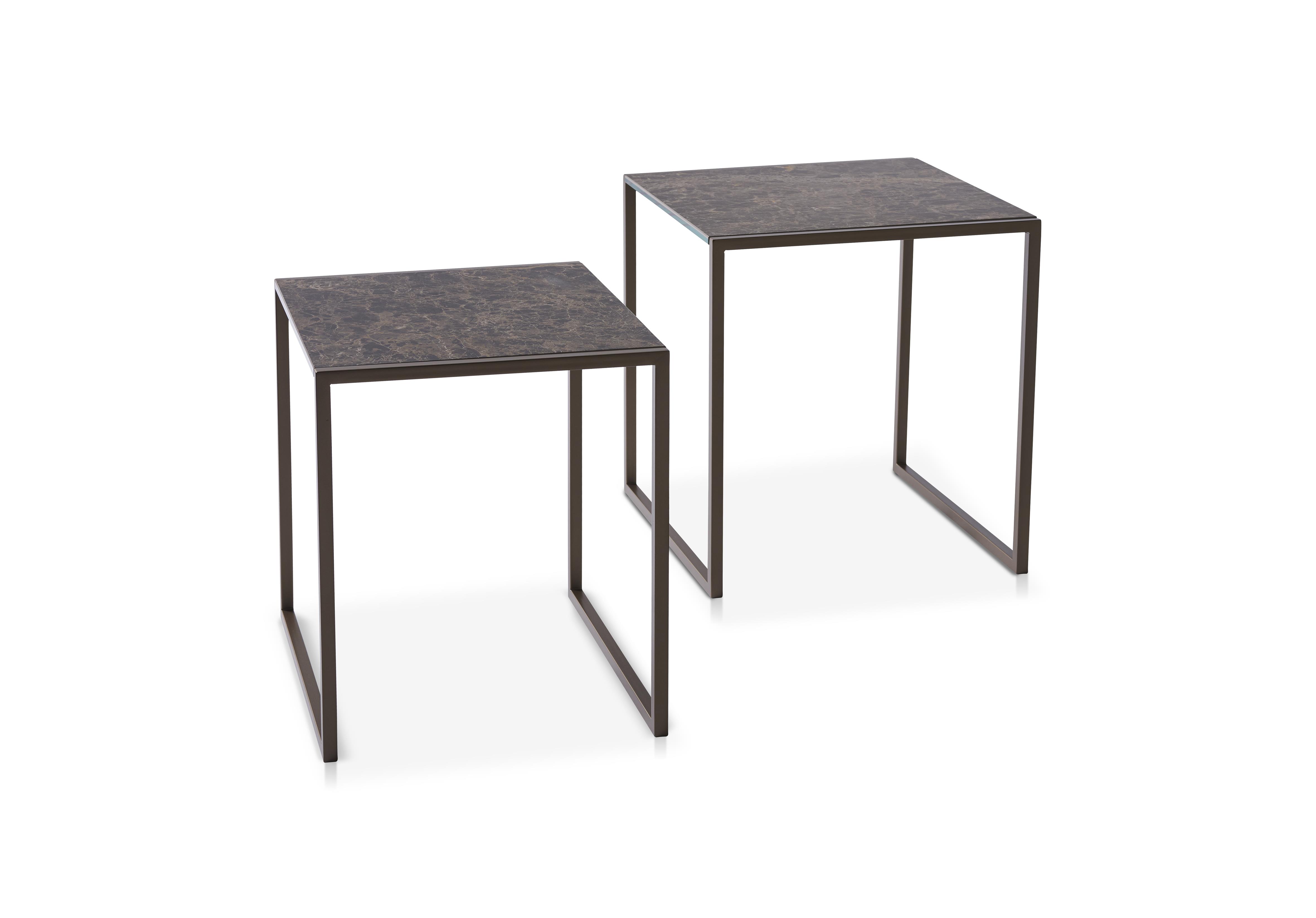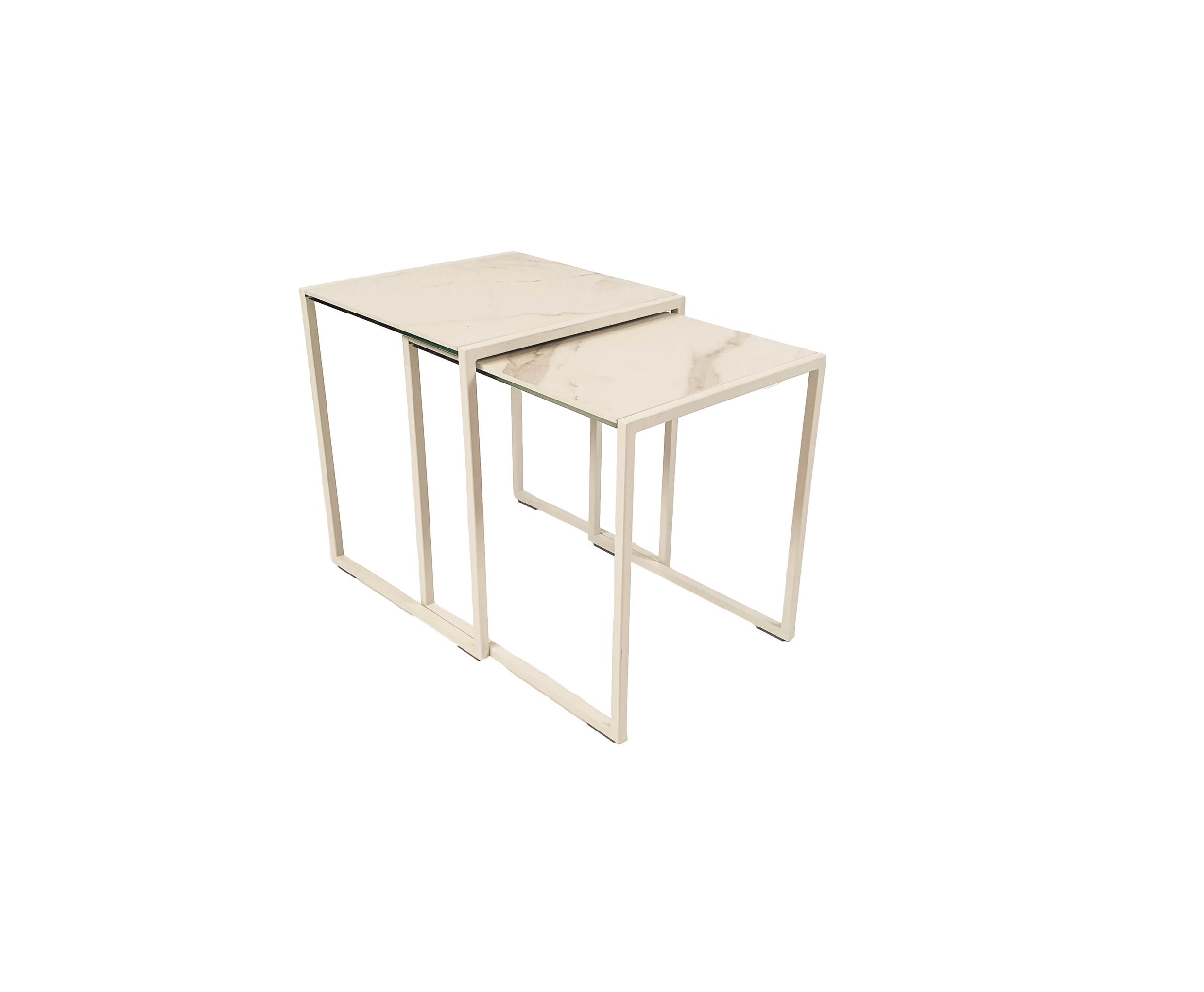 Die Tische lassen sich leicht ineinanderschieben und werden in der wunderschönen Keramik Kollektion sowie in der Ausführung mit Glasplatte in Optiwhite angeboten.