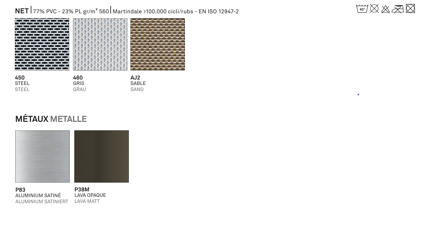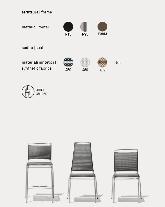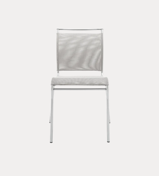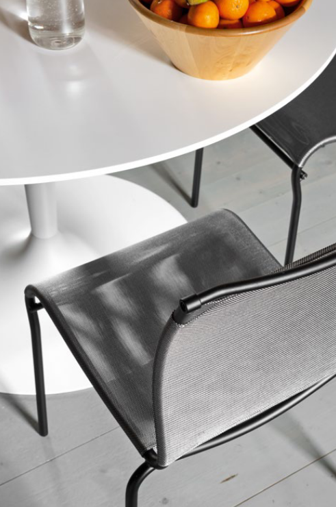 Die Verwendung modernster Materialien, wie Stahlrohr und synthetischem Netzstoff NET aus PVC/Polyester, garantiert dafür, dass dieser Stuhl robust, leicht und praktisch in der Handhabung ist. Durch sorgfältige Gestaltung ist der Stuhl bequem und ergonomisch, die Sitzfläche gewährleistet eine optimale Haltung beim täglichen Gebrauch und mit seinem ansprechendem Design überzeugt er in seiner Gänze.