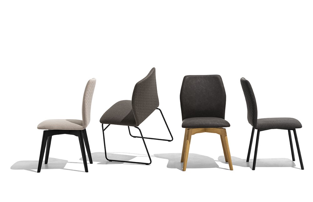 Der Stuhl HEXA hat ein Holzgestell und eine durchgehende Sitzschale aus Stoff. Die leicht hexagonale Form der Sitzschale macht Hexa zu einem modernen, vielseitigen Stuhl. Für die hintere Rückenlehne ist ein Stoffbezug mit hexagonalem Steppmuster erhältlich.