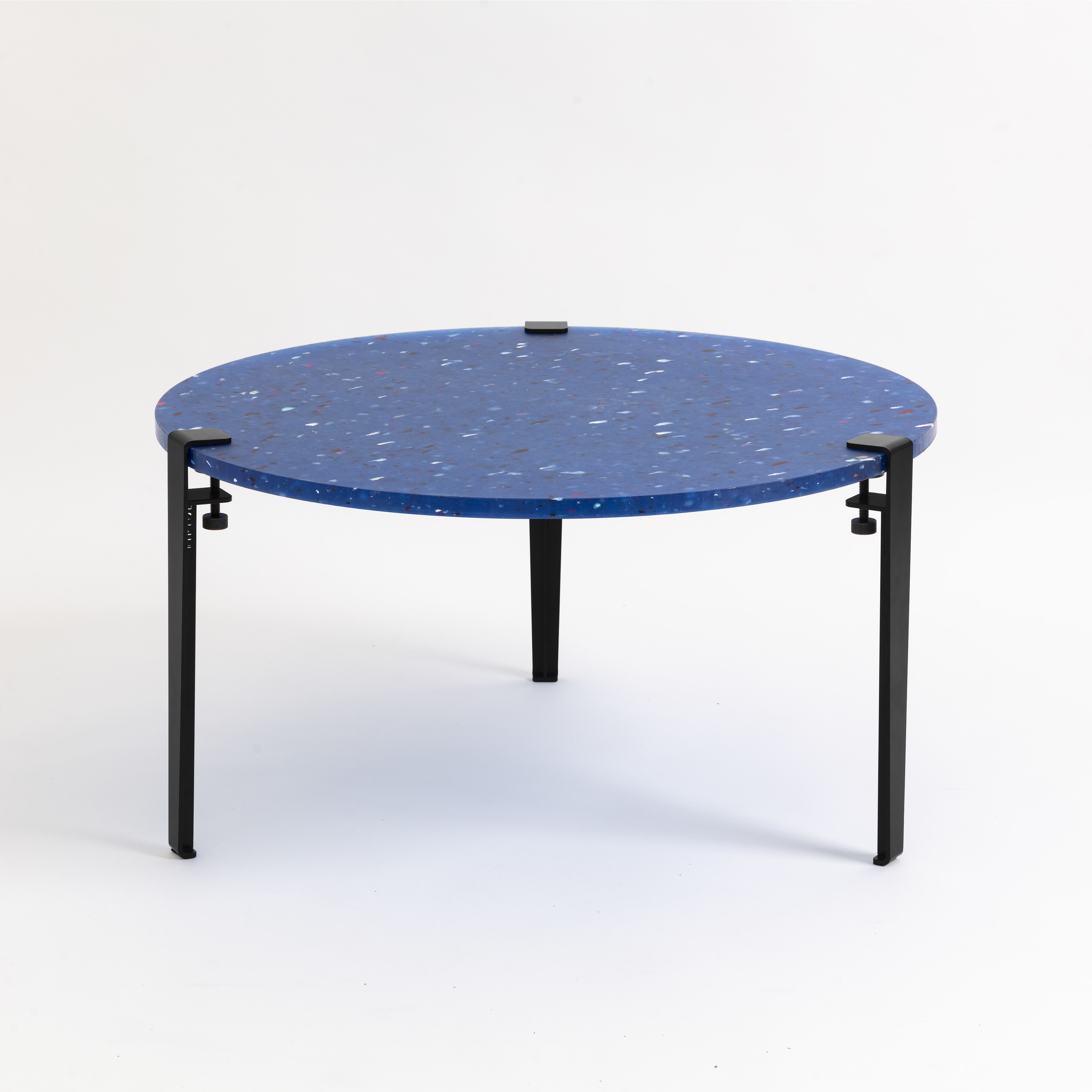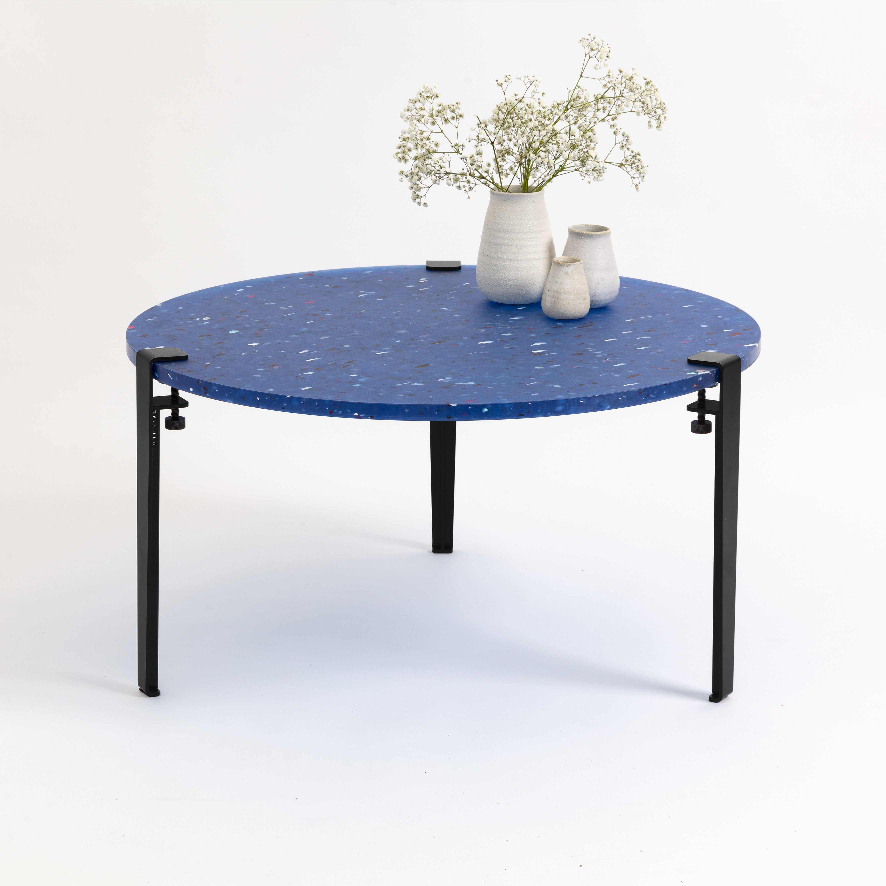 Jede Tischplatte ist ein Unikat: Farbe und Muster können von einer Tischplatte zur anderen variieren, was den Charme dieser blauen PACIFICO-Kollektion aus recyceltem Kunststoff ausmacht.