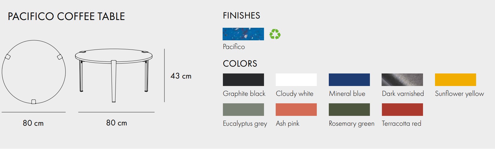 Die Tischplatte des PACIFICO-Tisches wird aus PET-Kunststoffverpackungen hergestellt.