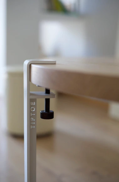 - für COUCHTISCHE oder BÄNKE - Mit dem Tischbein von TIPTOE kannst du in wenigen Minuten und ohne Werkzeug praktische und solide Designmöbel herstellen, die zu dir passen.Das ausgeklügelte Klemmsystem ermöglicht eine einfache, schnelle Montage und passt sich einer Vielzahl von Tischplatten an, sodass du ein maßgeschneidertes Möbelstück ganz nach deinem Geschmack zusammenstellen kannst. Das schlichte Design und die zahlreichen Farben fügen sich mühelos in jeden Einrichtungsstil ein. Die Tischbeine werden zu 100 % in Europa hergestellt und sind Teil eines nachhaltigen und umweltbewussten Konzepts. Stahl ist ein solides und unendlich recycelbares Material, und wird dich jahrzehntelang begleiten. Als Vorzeigekonzept der Marke ist das modulare Tischbein in unserer DNA verankert. ✓ Ideal für einen Couchtisch oder eine Bank✓ Einfach und schnell aufzubauen ✓ 100% in Europa hergestellt Wie wählt man eine Tischplatte? Empfohlene Dicke : 30 mm bis 41 mm Max. Größe bei 4 Tischbeinen (Tisch): 150 x 75 cmMax. Größe bei 4 Tischbeinen (Bank): 120 x 40 cmMax. Durchmesser mit 3 Tischbeinen: 100 cmVerwendung als Beistellbank: Eine Bank mit 4 TIPTOE-Tischbeinen bietet Platz für 2 Personen (ca. 150 kg)Max. Gewicht bei 4 Beinen (einschließlich der Tischplatte) : 70 kg WEITERE GRÖßEN GIBT ES HIERMaterial Tischbeine aus pulverbeschichtetem Stahl, EpoxydharzlackierungFarbenGraphitschwarzCremeweißMitternachtsblauBlassblauBriochegelbEukalyptusMandarinenrotKhakigrünAzurblauMaßeHöhe 43 cmBreite 6 cmGewicht 1 kg (pro Bein)