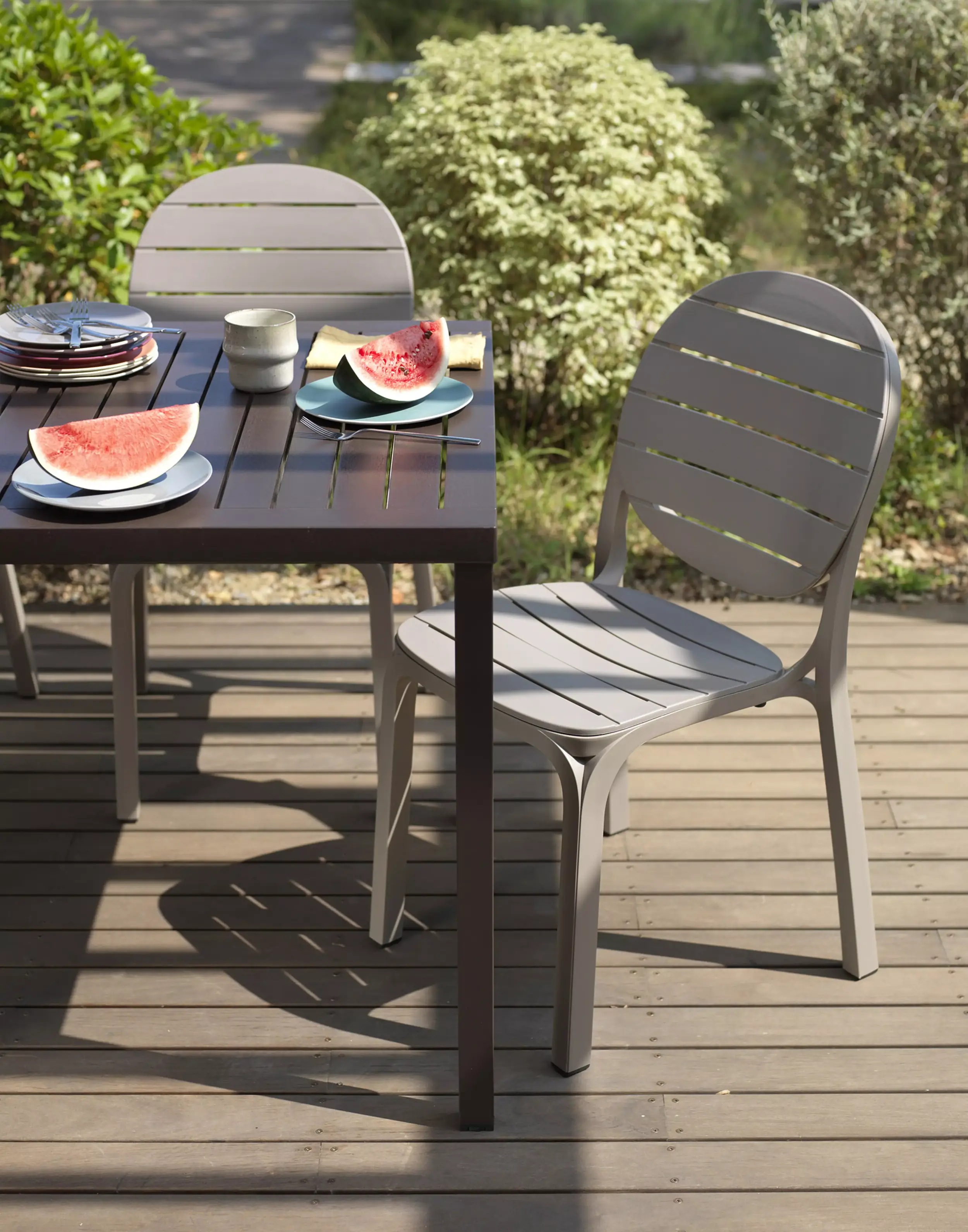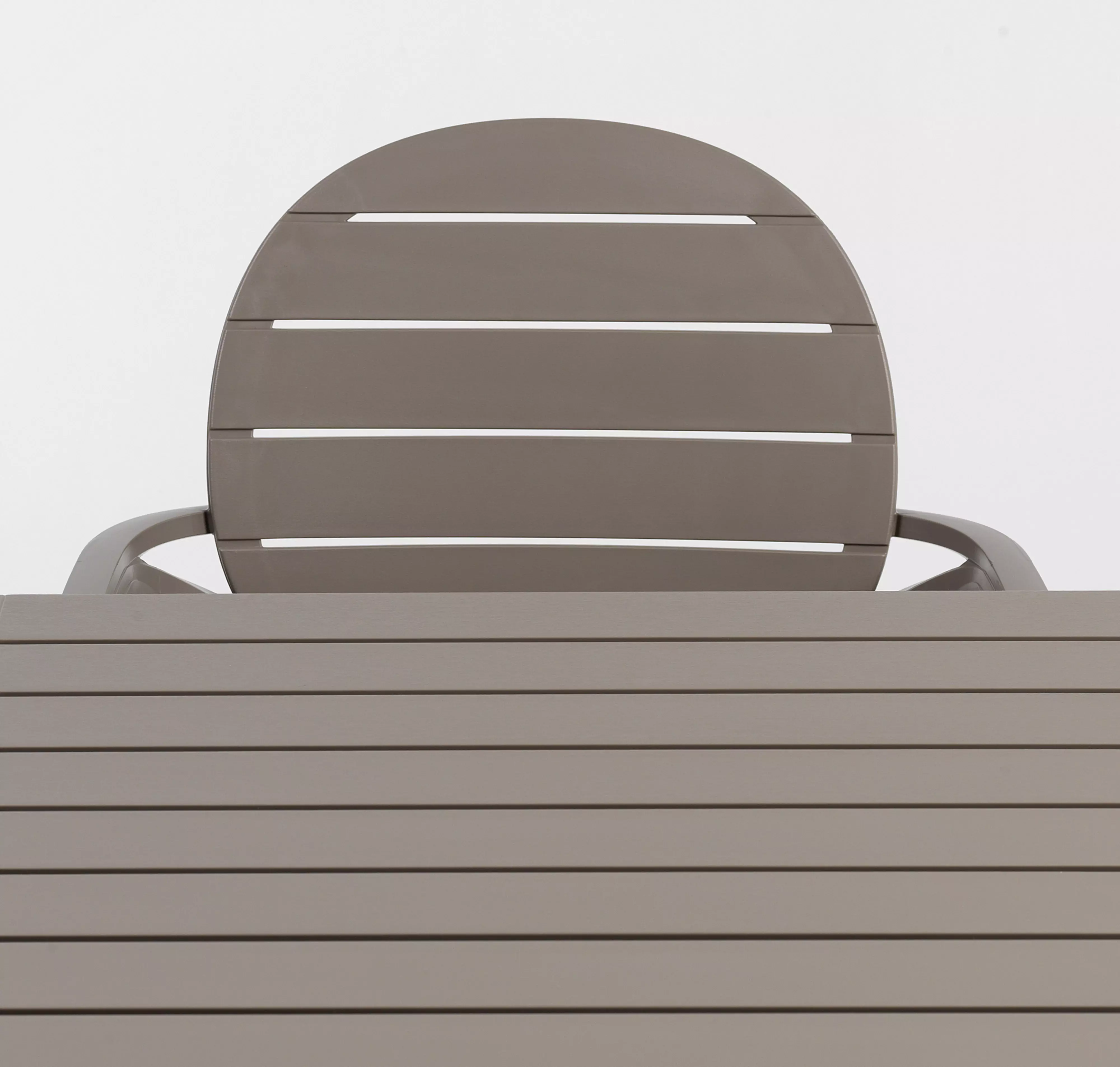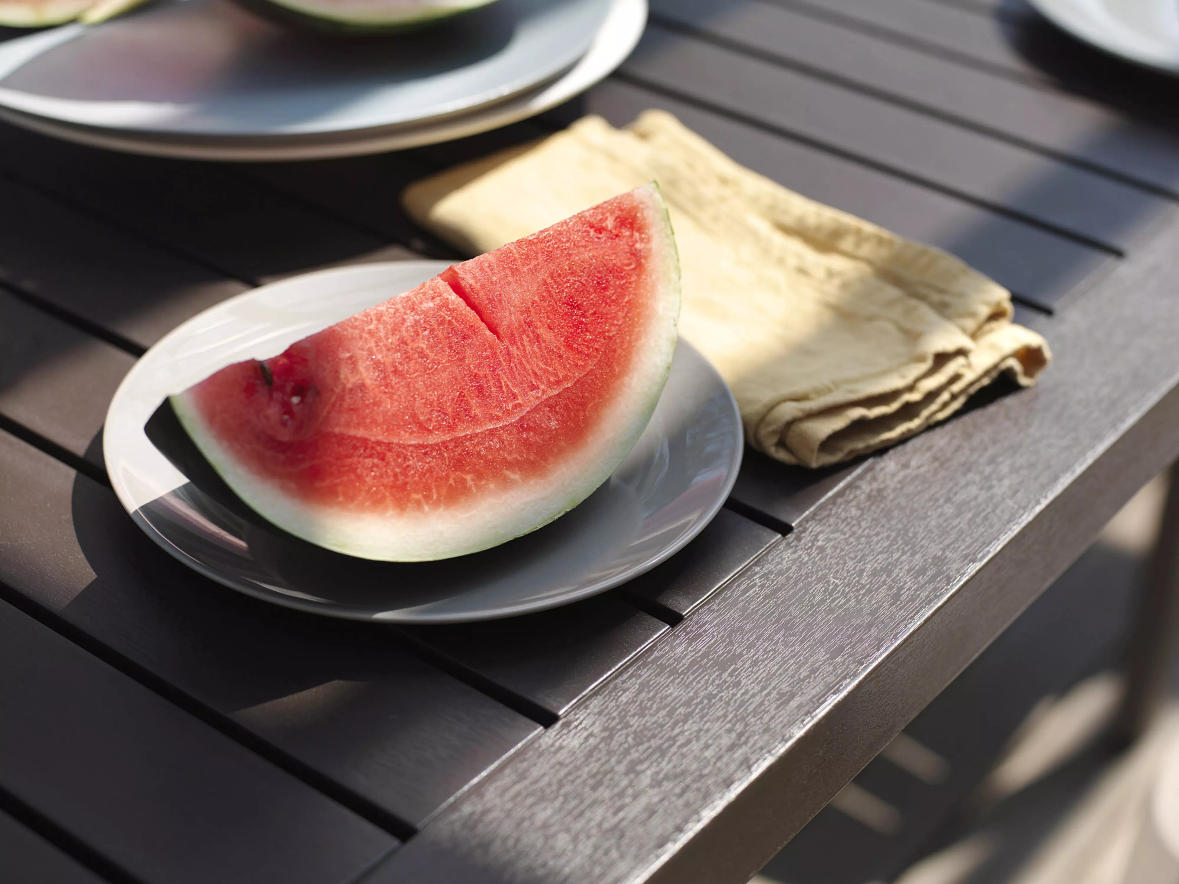 Tischplatte aus DurelTOP-Polypropylen mit UV-Zusätzen und durchgehender Farbgebung.