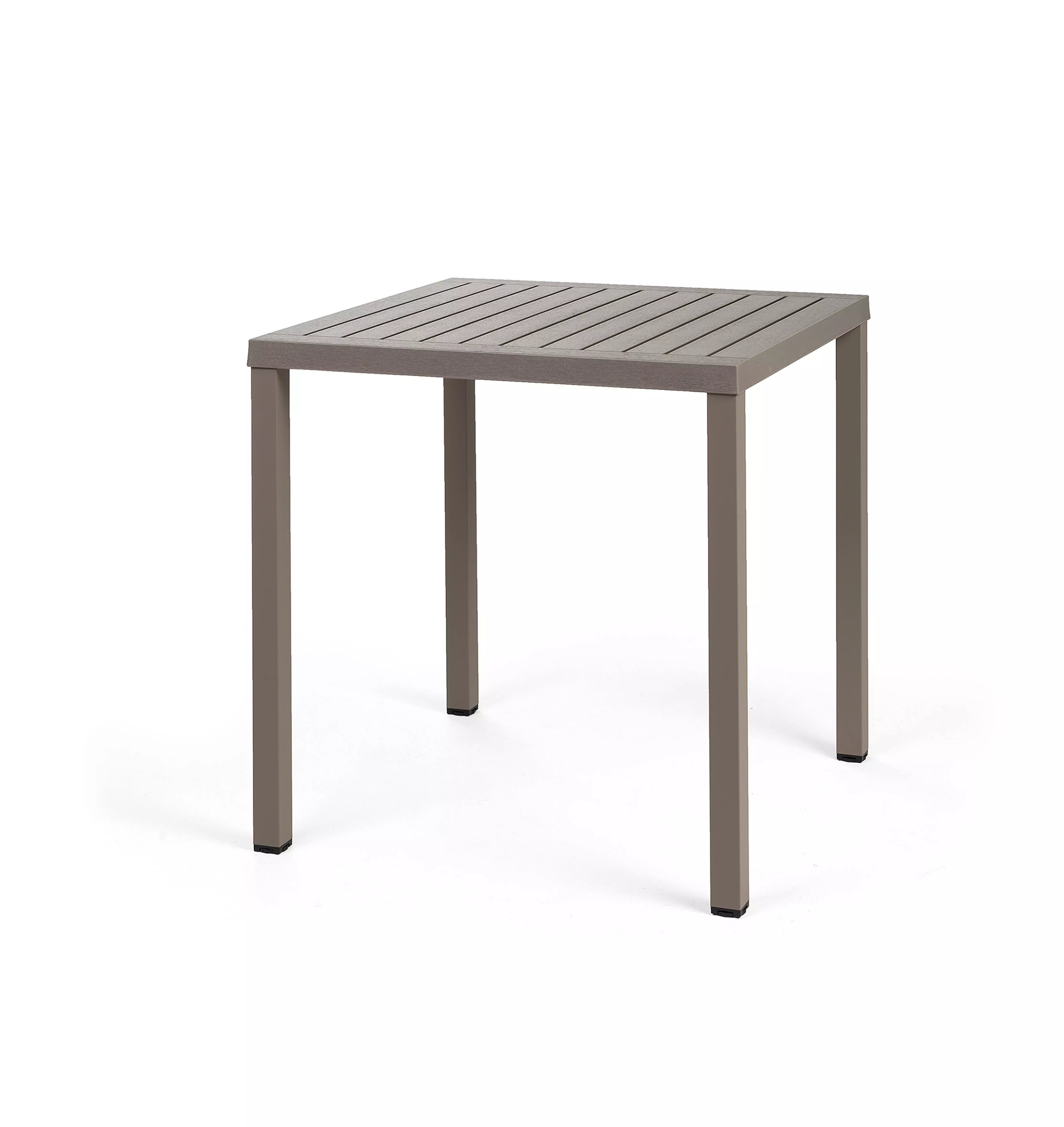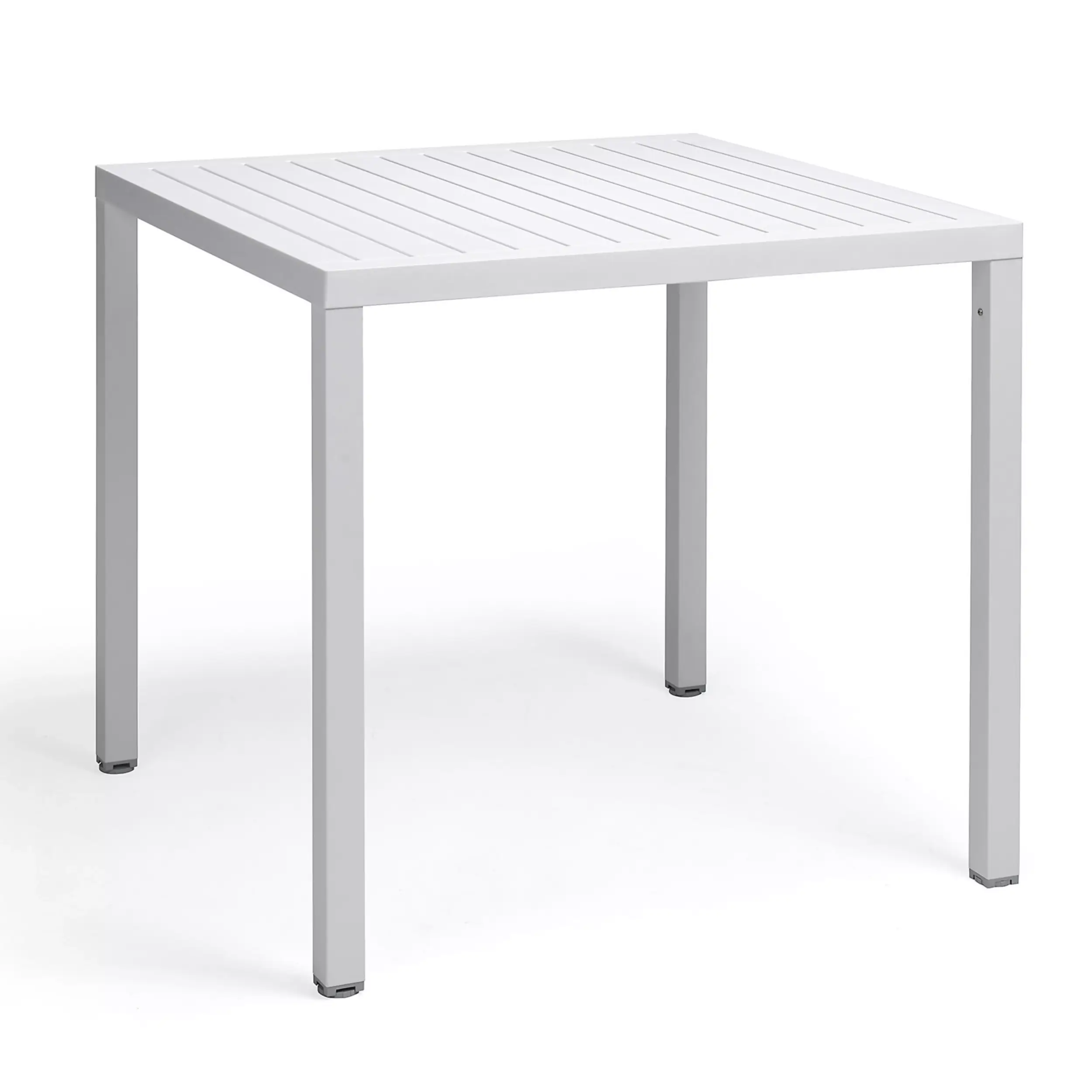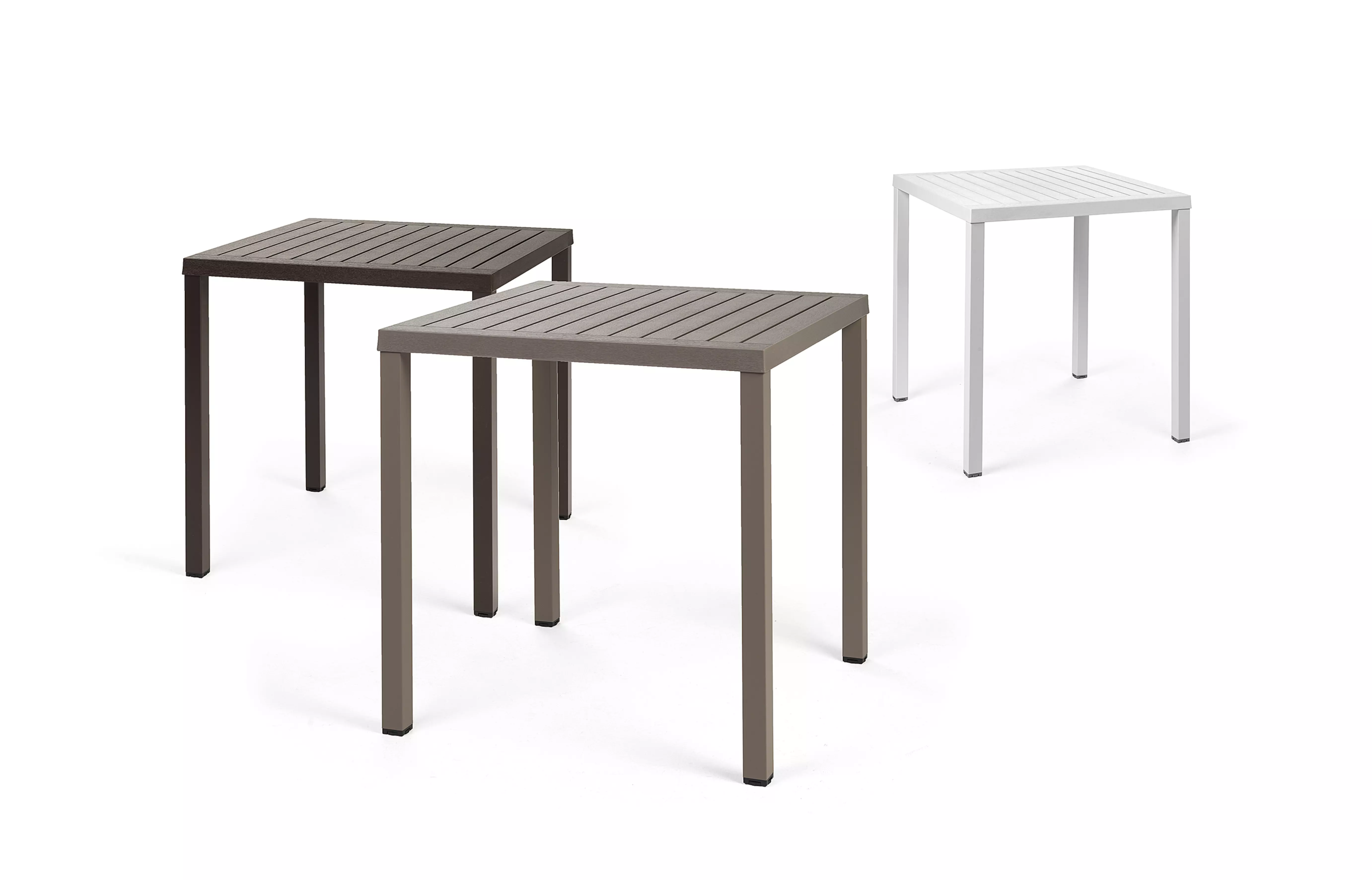 Beine aus lackiertem Aluminium mit quadratischem Querschnitt.