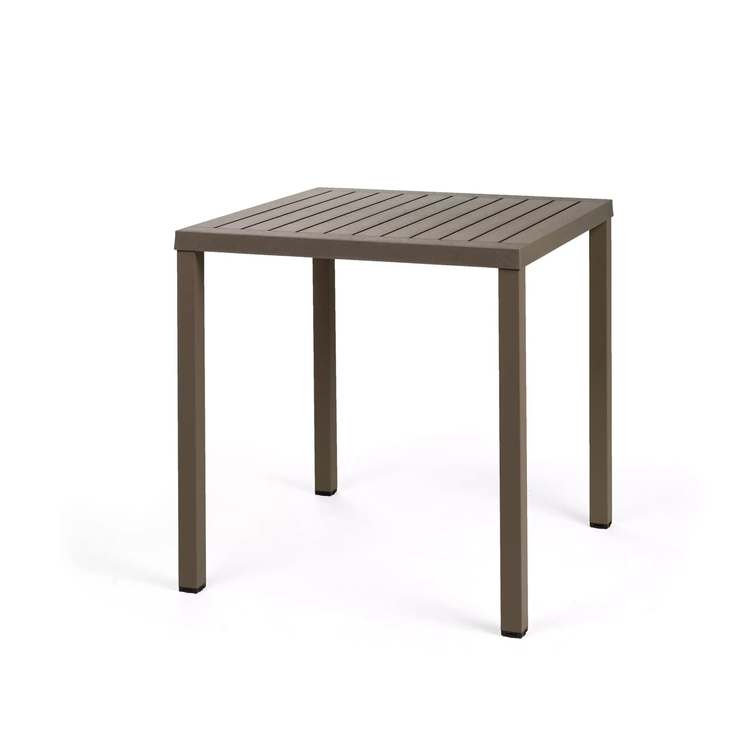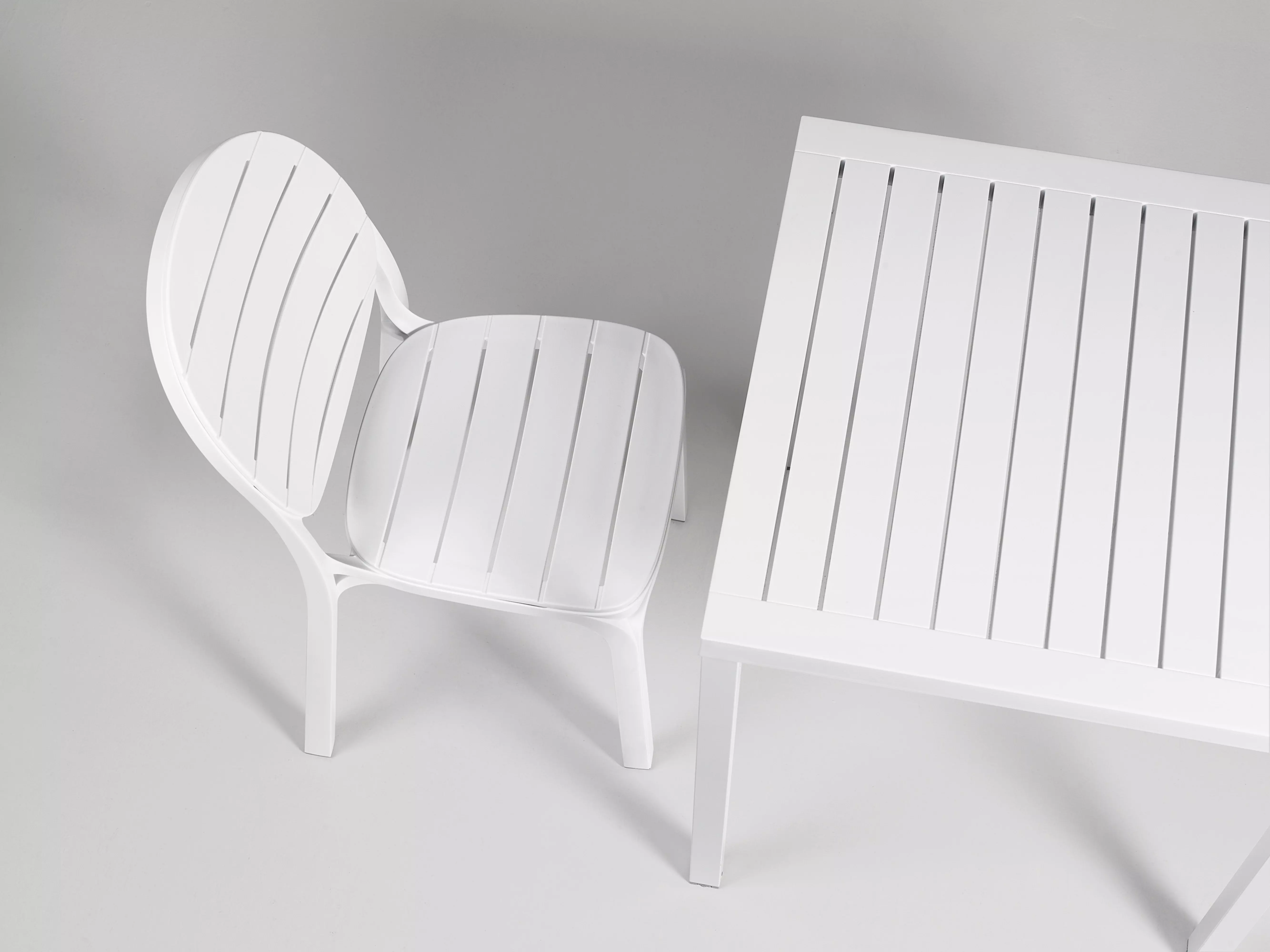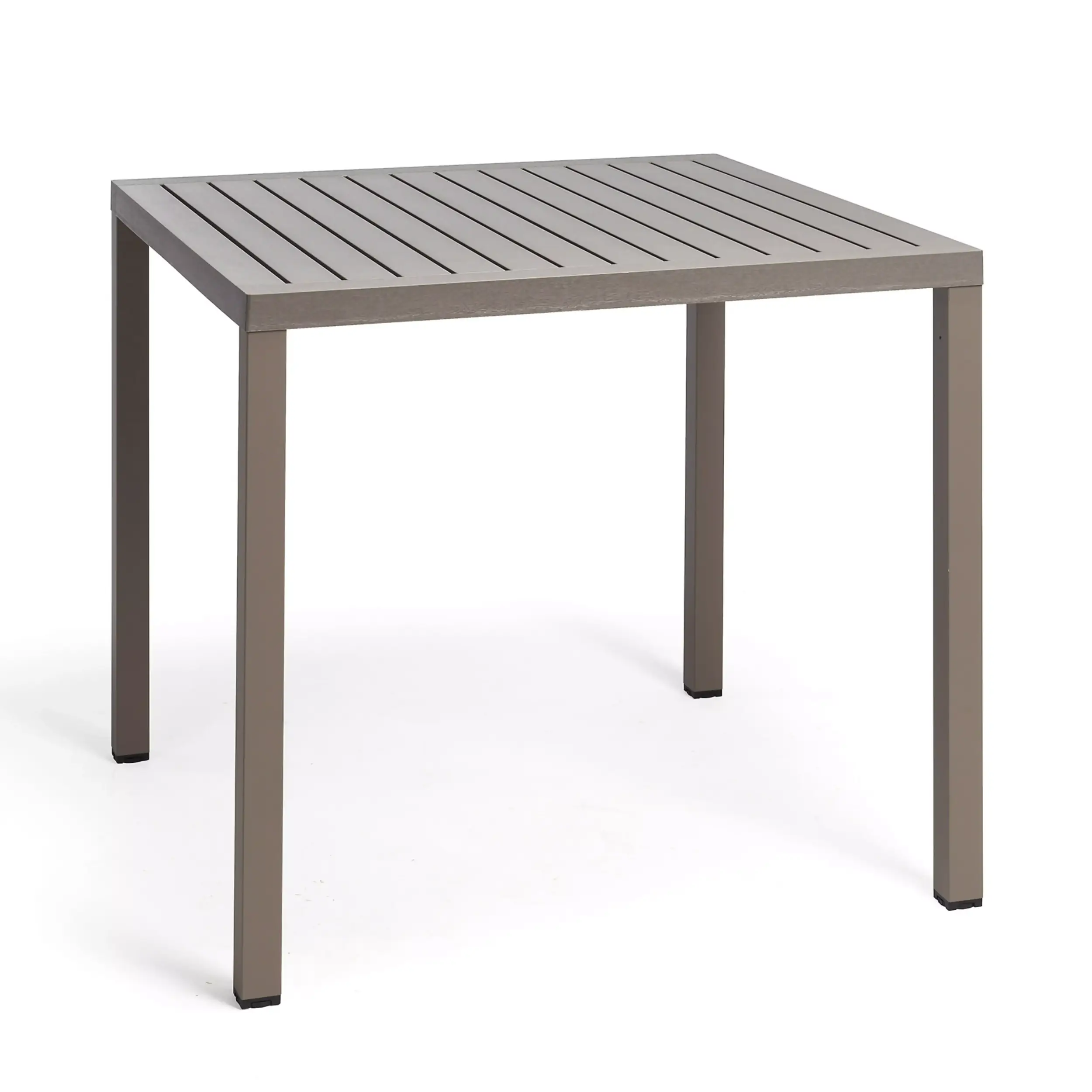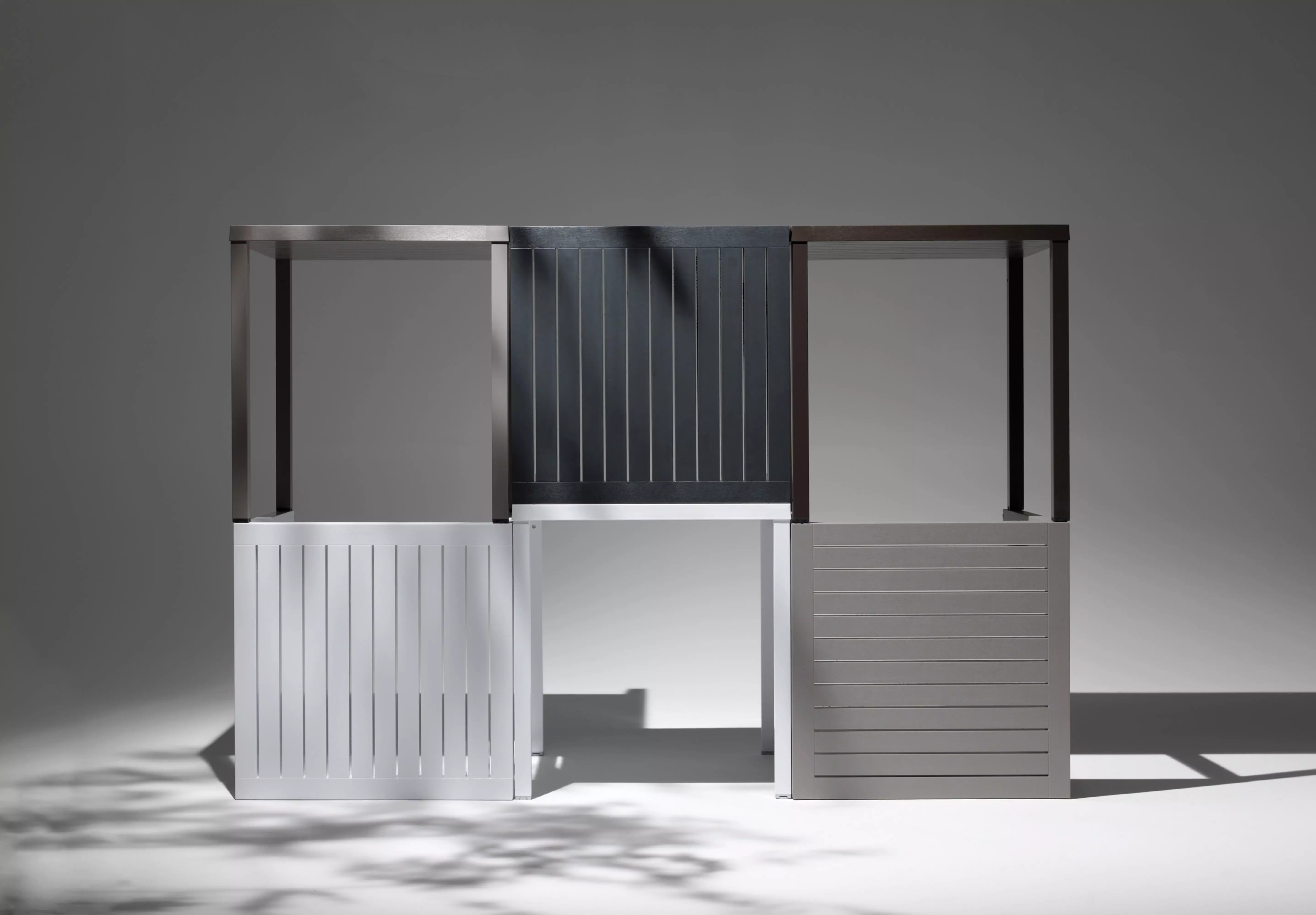 Beine aus lackiertem Aluminium mit quadratischem Querschnitt.