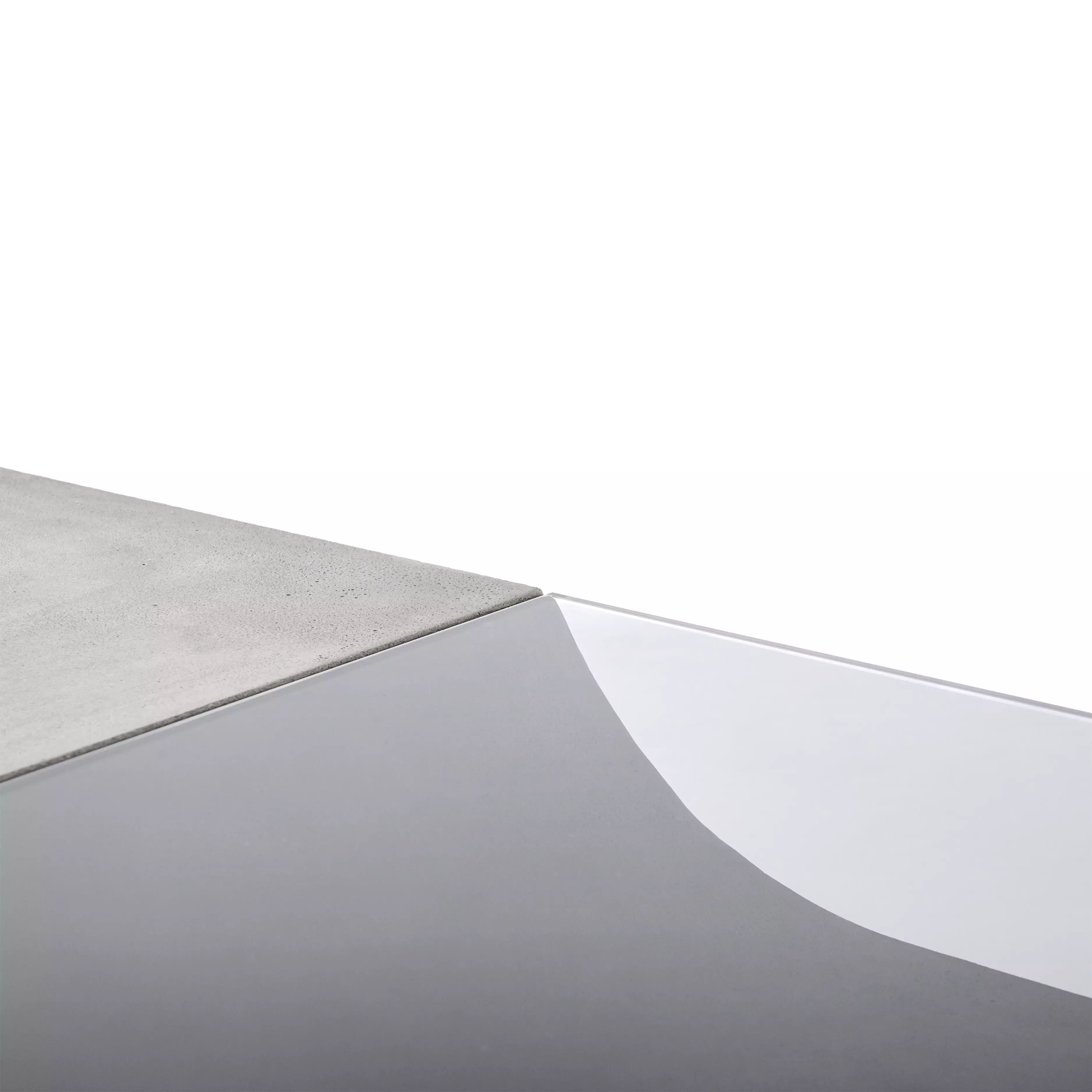 Strut THE SQUARE ist mit einer viertelkreisförmigen Tischplatte gestaltet(quadratisch mit einer abgerundeten Ecke).Lyon Béton und Designer Bertrand Jayr haben sich erneut zusammengetan, um dir diesen sinnlichen, vielseitigen Tisch zu präsentieren. Eine Mischung aus Couchtisch und Gueridon, Strut verfügt über eine zweistufige, zweimaterialige Tischplatte, die dazu einlädt, deine dekorativen Gegenstände und andere Objets d'Art wie Schauspieler in einem Miniaturtheater anzuordnen. Die Rillen des Sockels bringen zusätzliche Textur in den Beton. Lass ihn das Licht einfangen und Schatten werfen. Streiche mit deiner Hand entlang der gewölbten Seiten des Sockels und du wirst es unter deinen Fingern schnurren hören. Die Glasplatte ist beiseitig nutzbar, um sich besser an dein Wohnzimmer anzupassen.DesignLyon BétonMaßeBreite 80,3 cmTiefe 85 cmDurchmesser Fuß 40,6 cmHöhe 54,5 cmGewicht 58 kgMaterialFaserbeton / gehärtetes Glas farbloser wasser- und ölabweisender matter Lack / polierte Kanten PflegehinweiseVerwende keine abrasiven Materialien oder Lösungsmittel auf der Oberfläche. Trage regelmäßig schützendes Wachs oder Öl auf. Eine Flasche Imprägniermittel gegen Flecken ist im Lieferumfang dieses Möbels enthalten. Es verhindert signifikant, dass Öl, Fett und Wasser in den Beton eindringen.