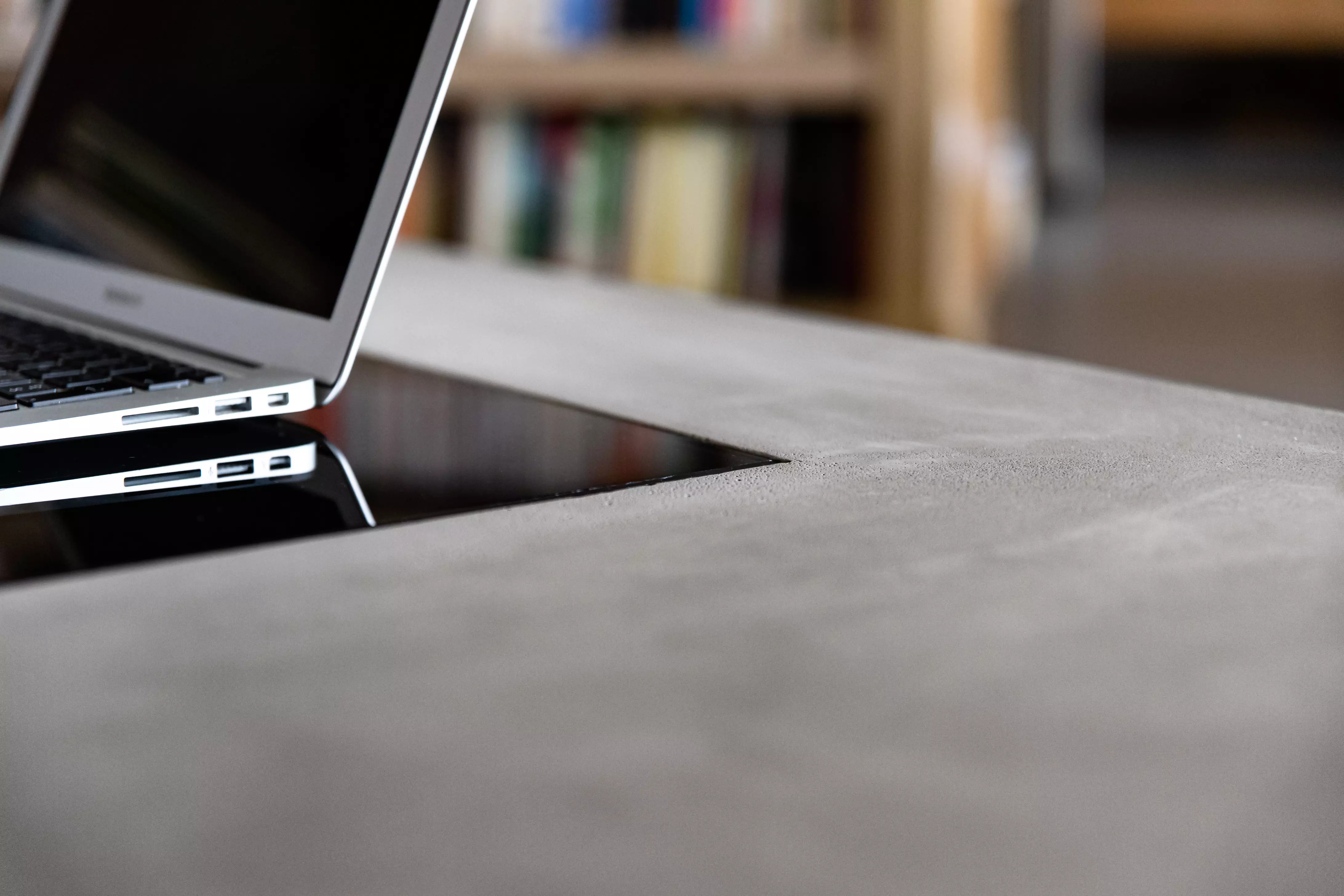 Eine Flasche Imprägniermittel gegen Flecken ist im Lieferumfang dieses Möbels enthalten. Es verhindert signifikant, dass Öl, Fett und Wasser in den Beton eindringen.