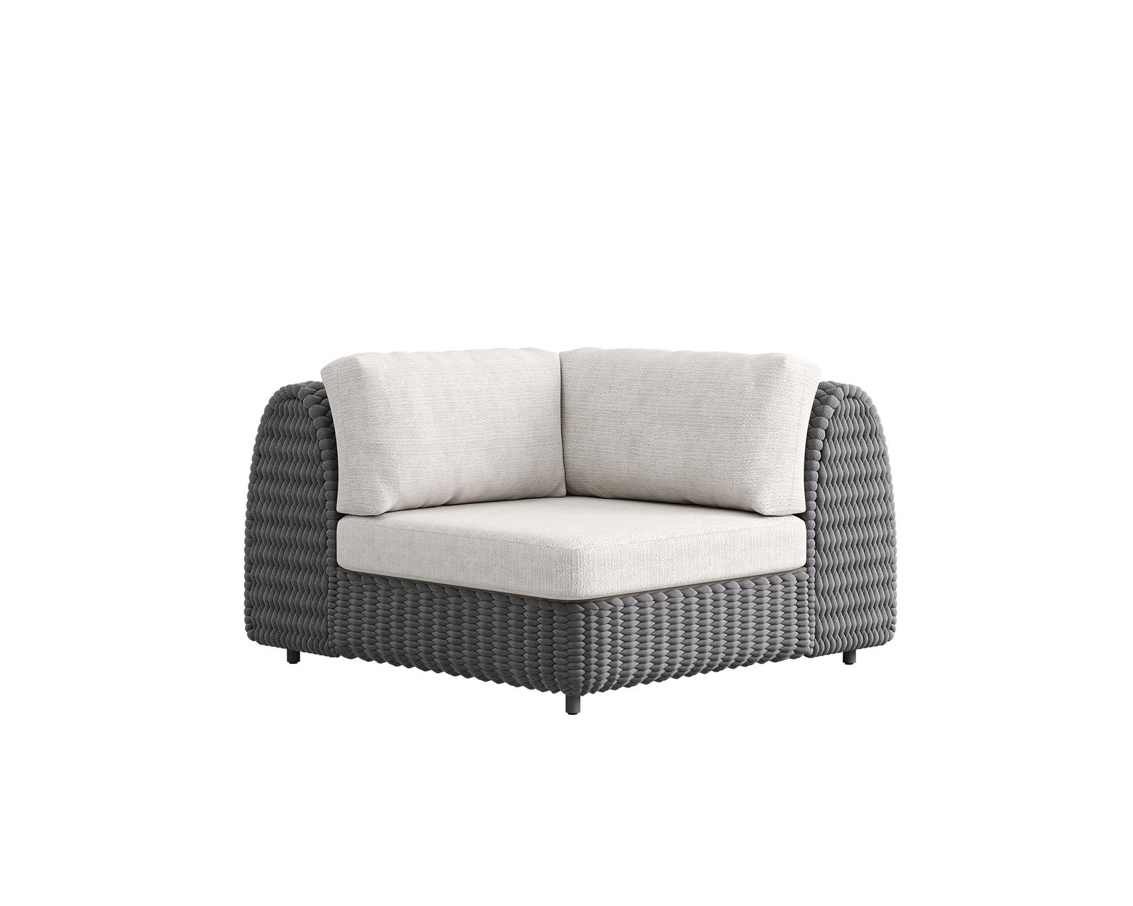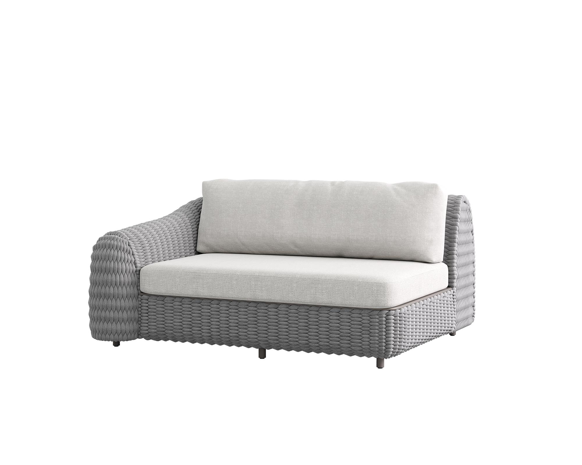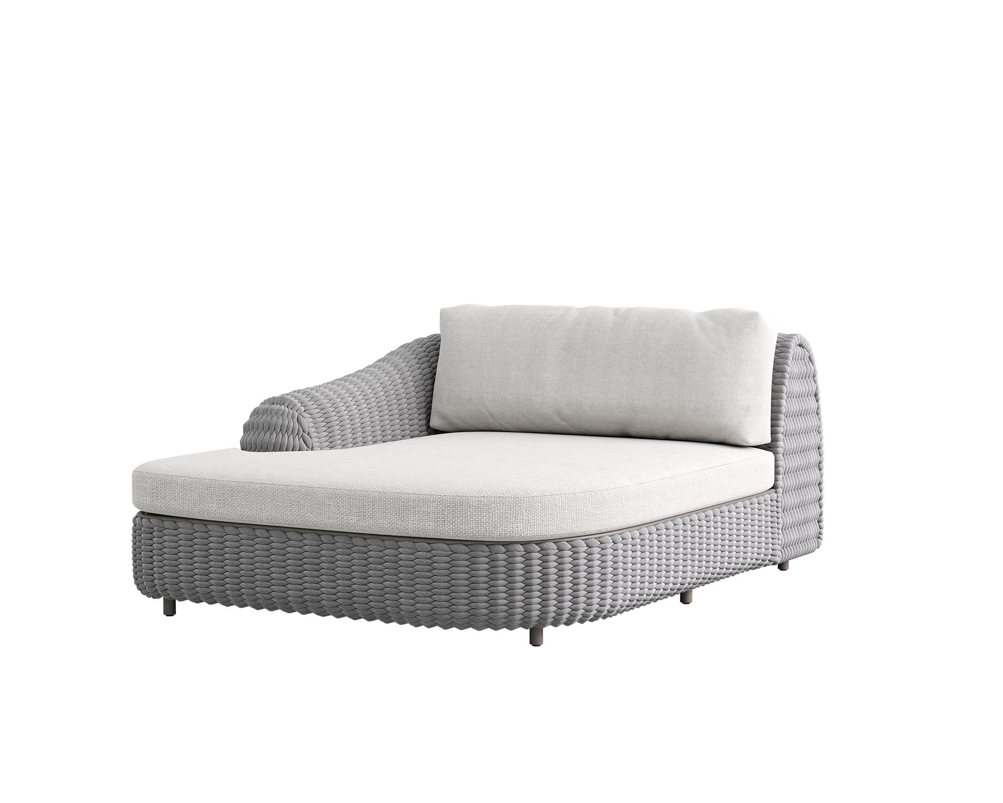 Deauville besteht aus einem Loveseat- und einem Chaiselongue-Modul - beide mit linkem und rechtem Arm erhältlich -, einem Eckmodul, einem Mittelmodul mit Rückenlehne und einem Inselmodul. Das bedeutet, dass die sieben Module zu einer großen Lounge-Einrichtung kombiniert werden können, aber auch zu einer kompakteren Einrichtung, wie z.B. die Chaiselongue zusammen mit dem Loveseat.