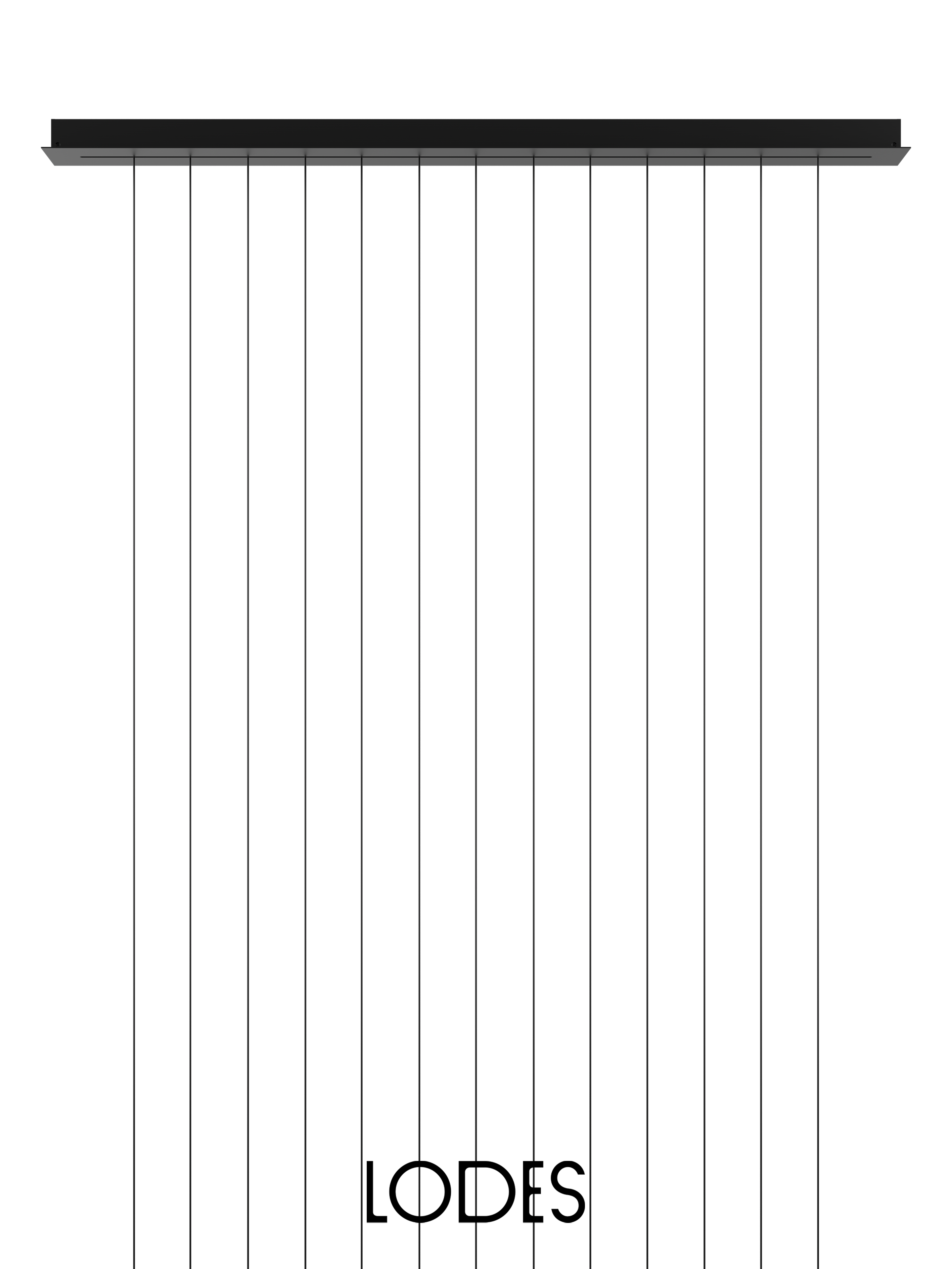 Um mehrere Lodes Hängeleuchten zum Einsatz zu bringen und ein zusammenhängendes Modul zu bilden, bietet Studio Italia diese Deckenhalterung für bis zu 11 Leuchten an.