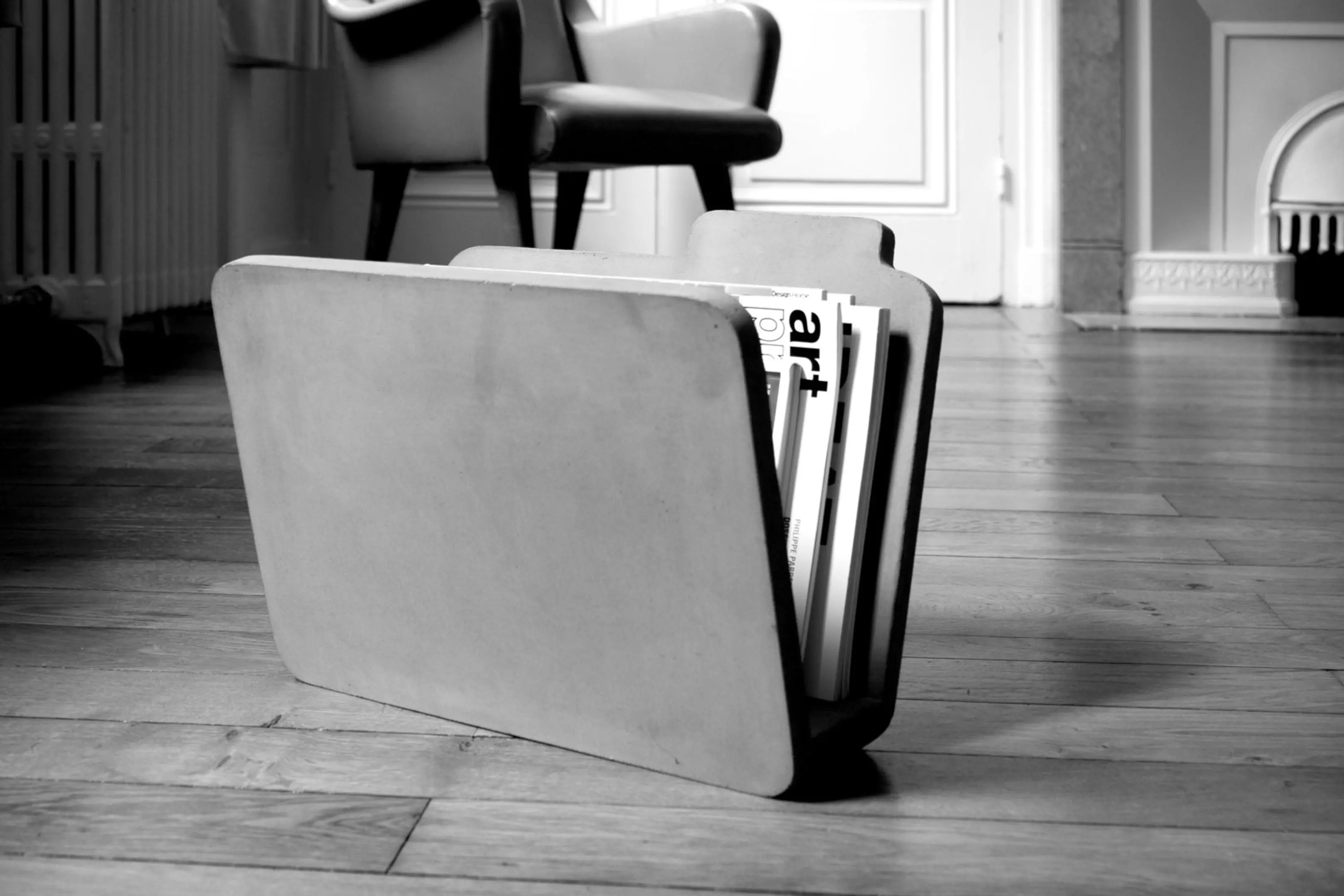 In Form eines Computerdatei-Symbols gefertigt, sieht dieser spaßige und praktische Beton-Magazinhalter neben einem Sofa oder einem Schreibtisch toll aus.