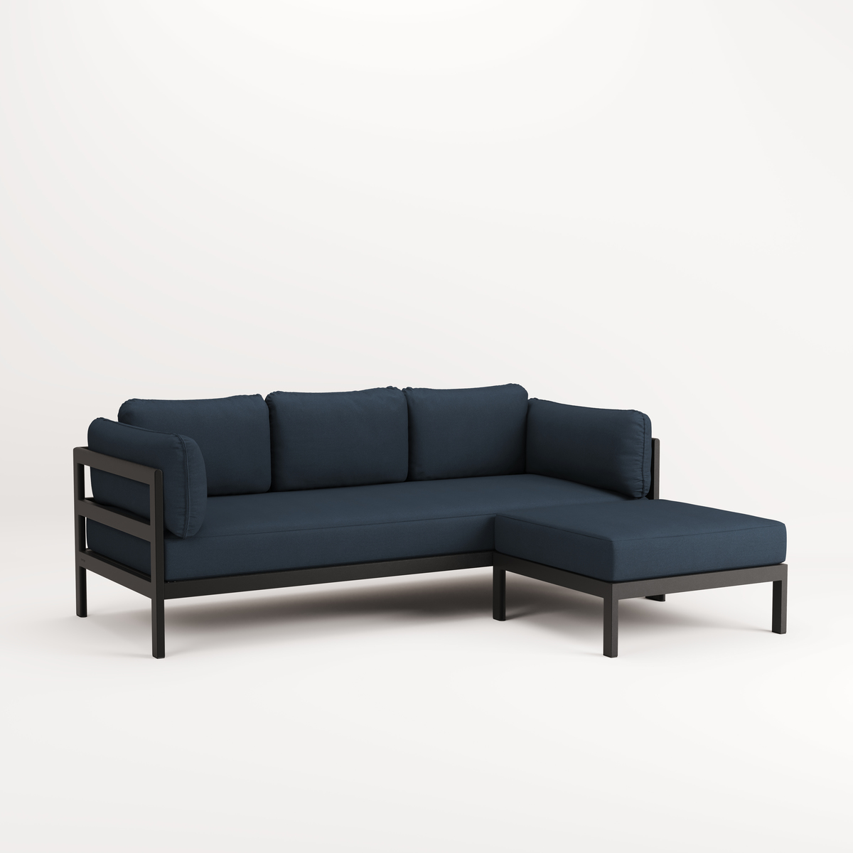 Um den 3-Sitzer mit Longchair zu bekommen, bestell einfach den Hocker dazu. Er wird easy und schnell mit 2 Clips am Gestell des Sofas  - und du kannst die Beine hochlegen.