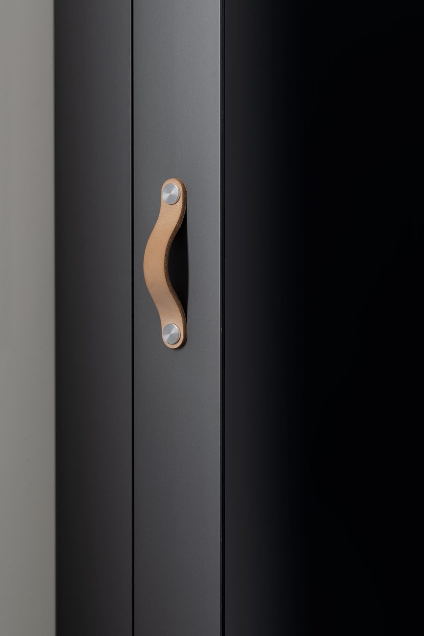 Jedes Element BoxOne wird mit 3 Griffen geliefert, die beliebig angebracht werden können (aus schwarzem oder naturfarbigem Leder Presot® oder aus mattem Silikon).