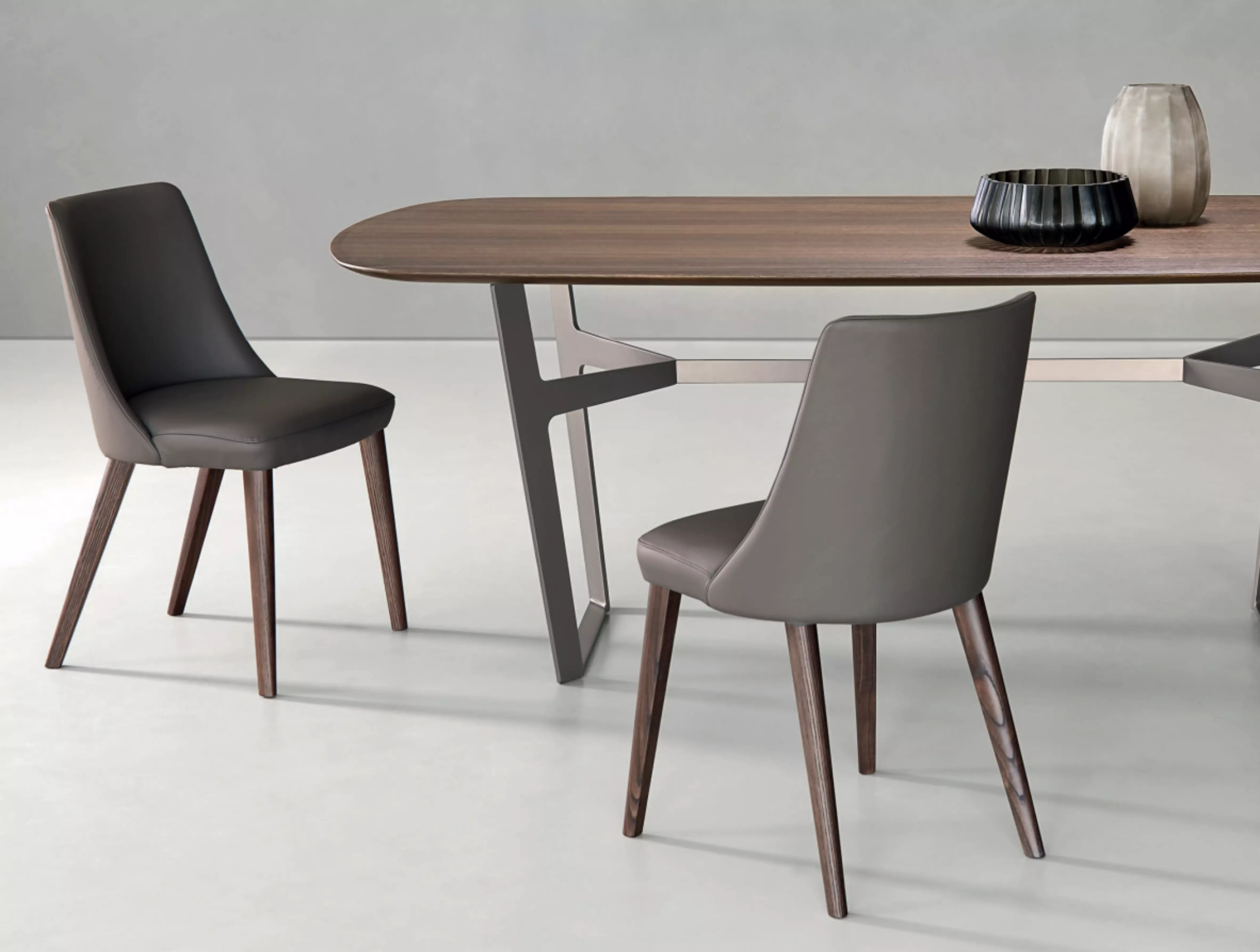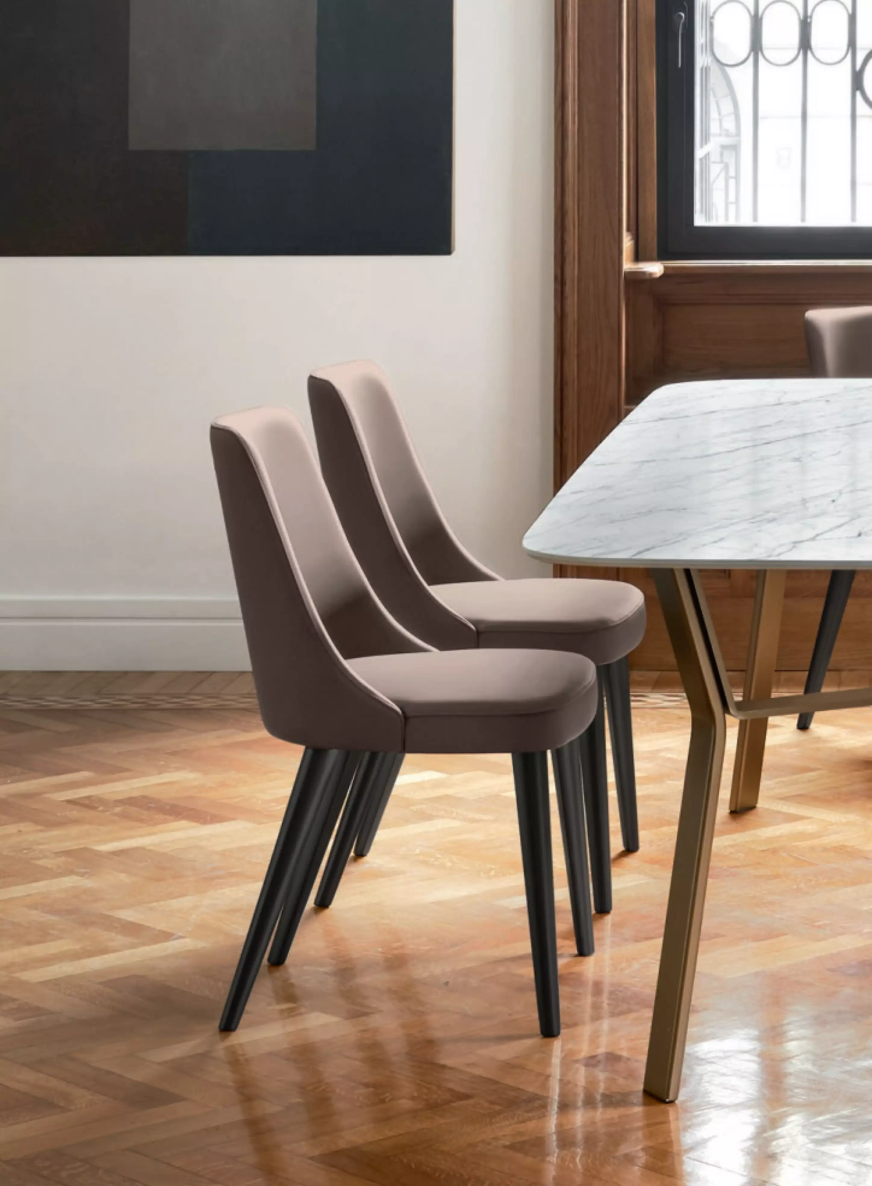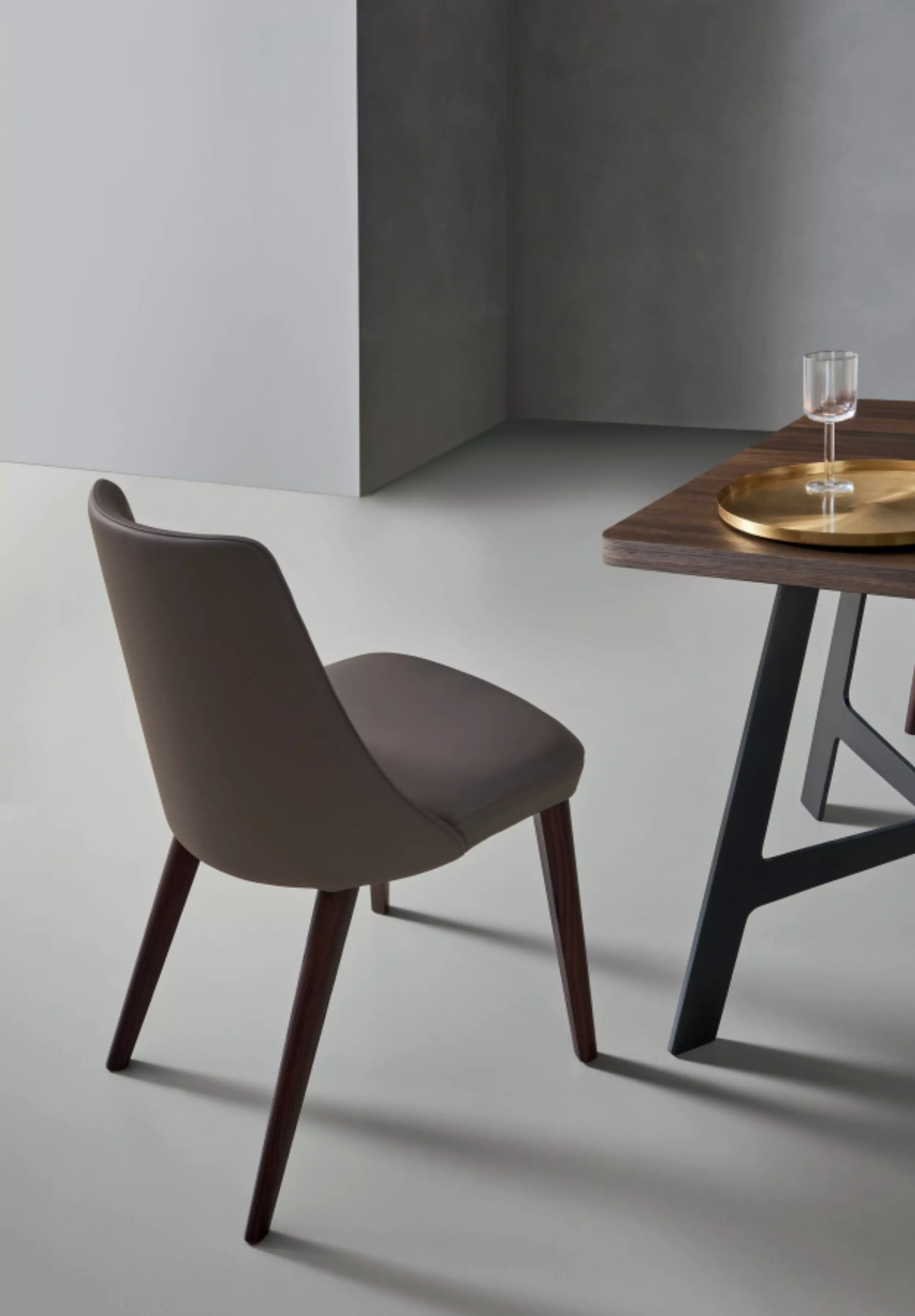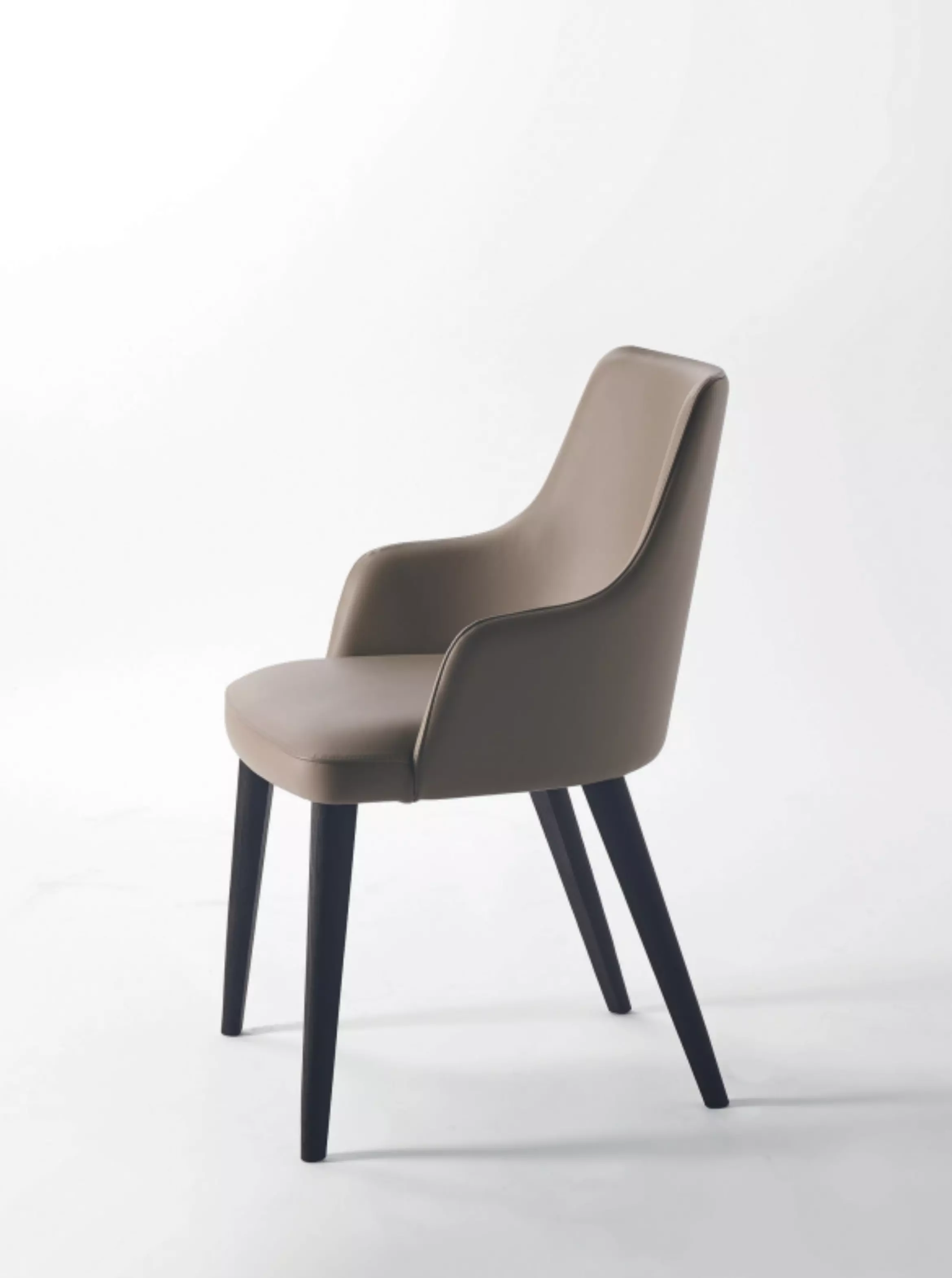 Der Polsterstuhl Elena Elena ist auch in einer Version mit Armlehnen erhältlich, immer mit einem umschließenden Design.