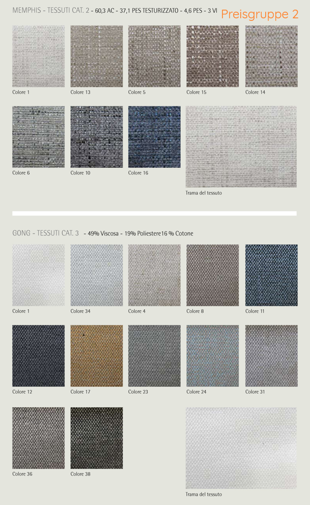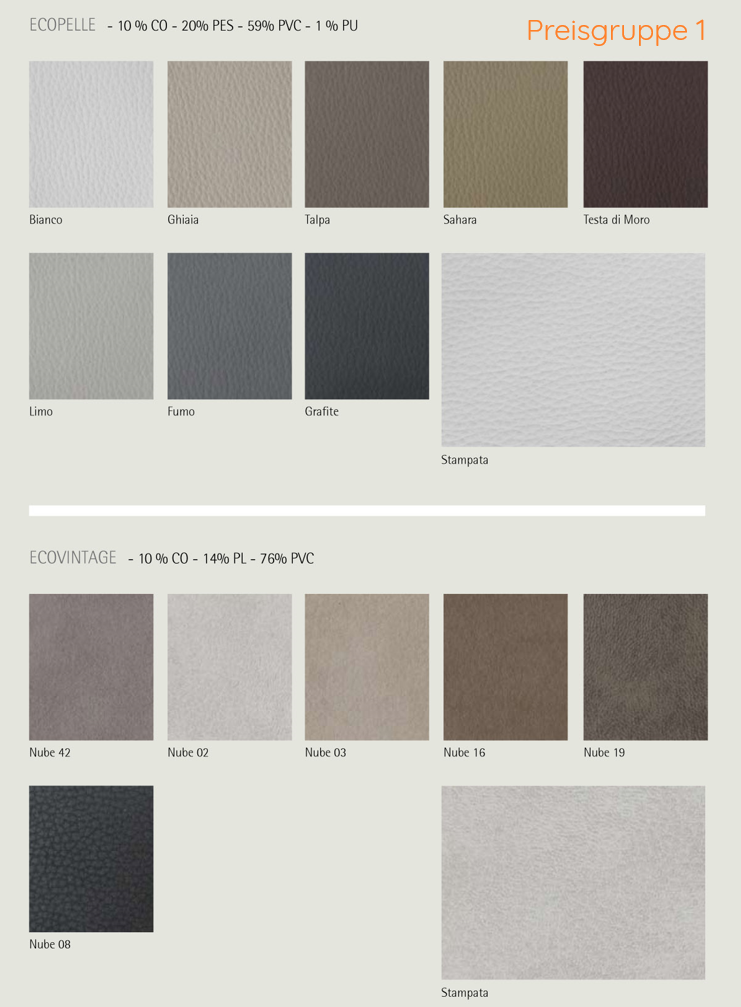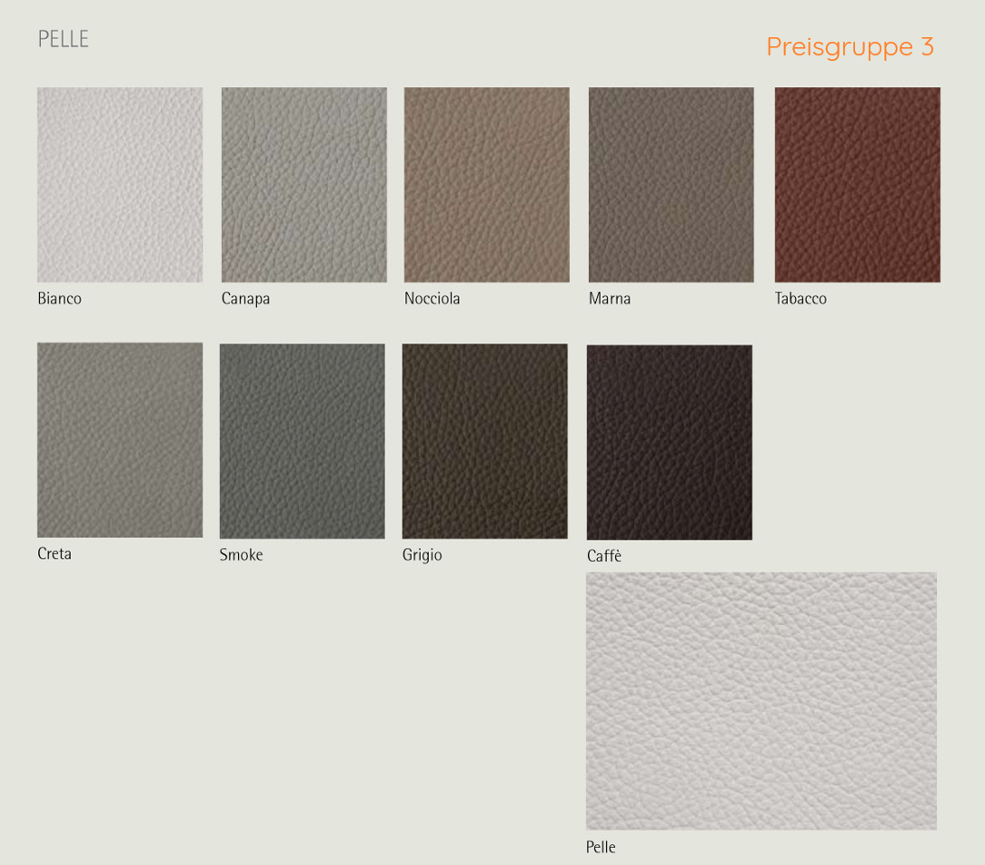 In der Bildergalerie gibt es eine Übersicht der Bezugsstoffe und Lederfarben, sowie alle Holzausführungen.