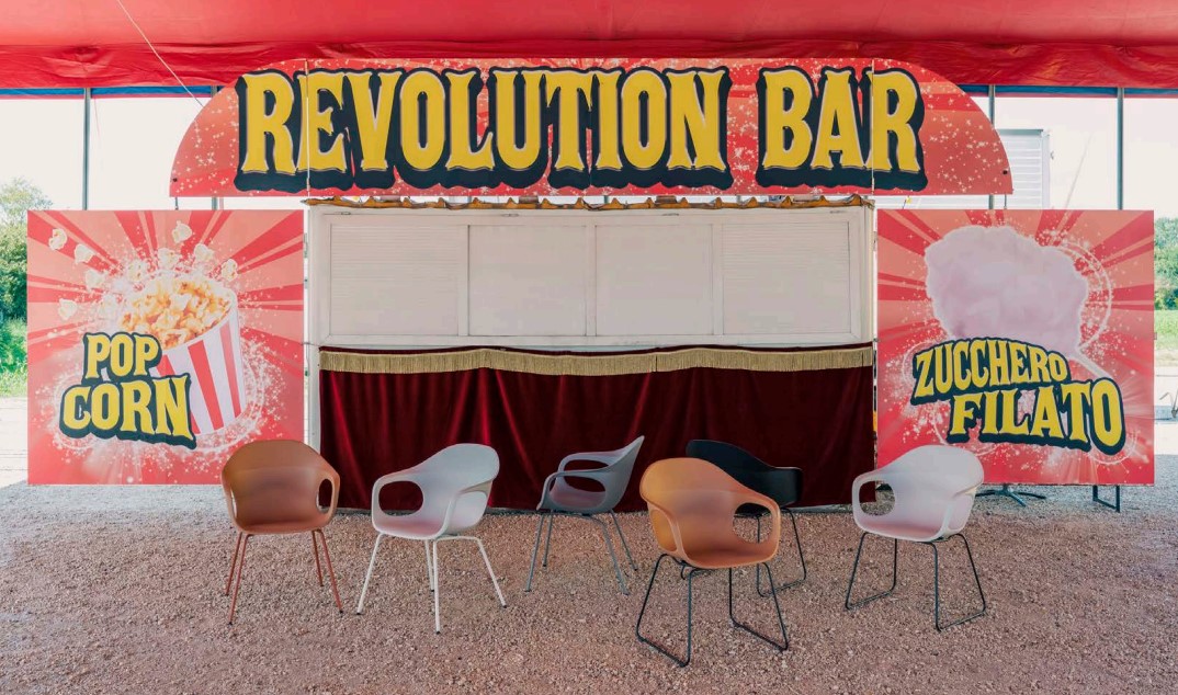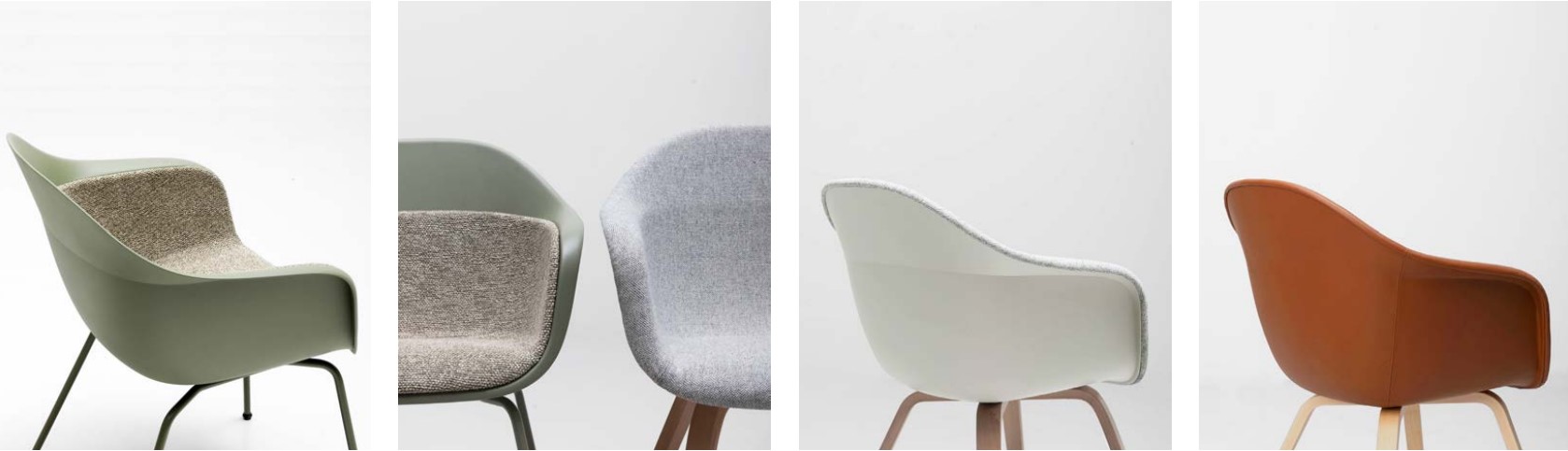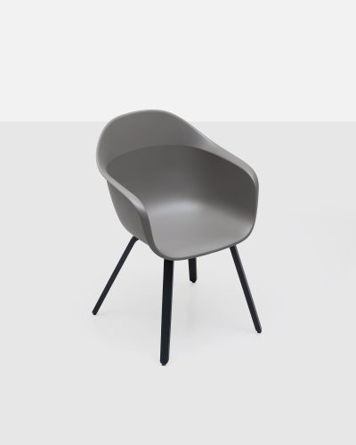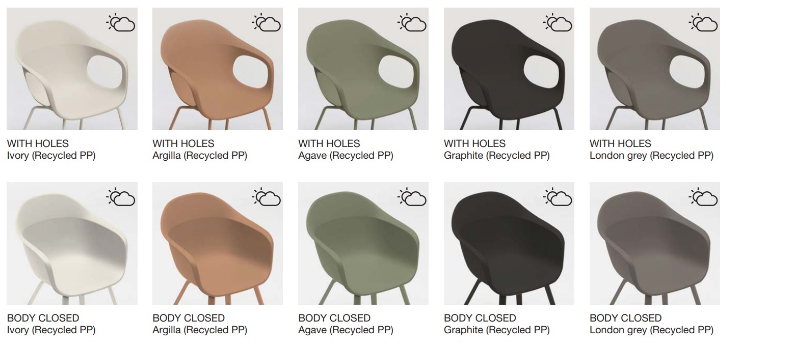 Der Stuhl mit vier Beinen oder Kufengestell ist auch für den Outdoor-Bereich geeignet: In diesem Fall kann der Aufbau mit einer Öffnung für den Abfluss von Regenwasser versehen werden.