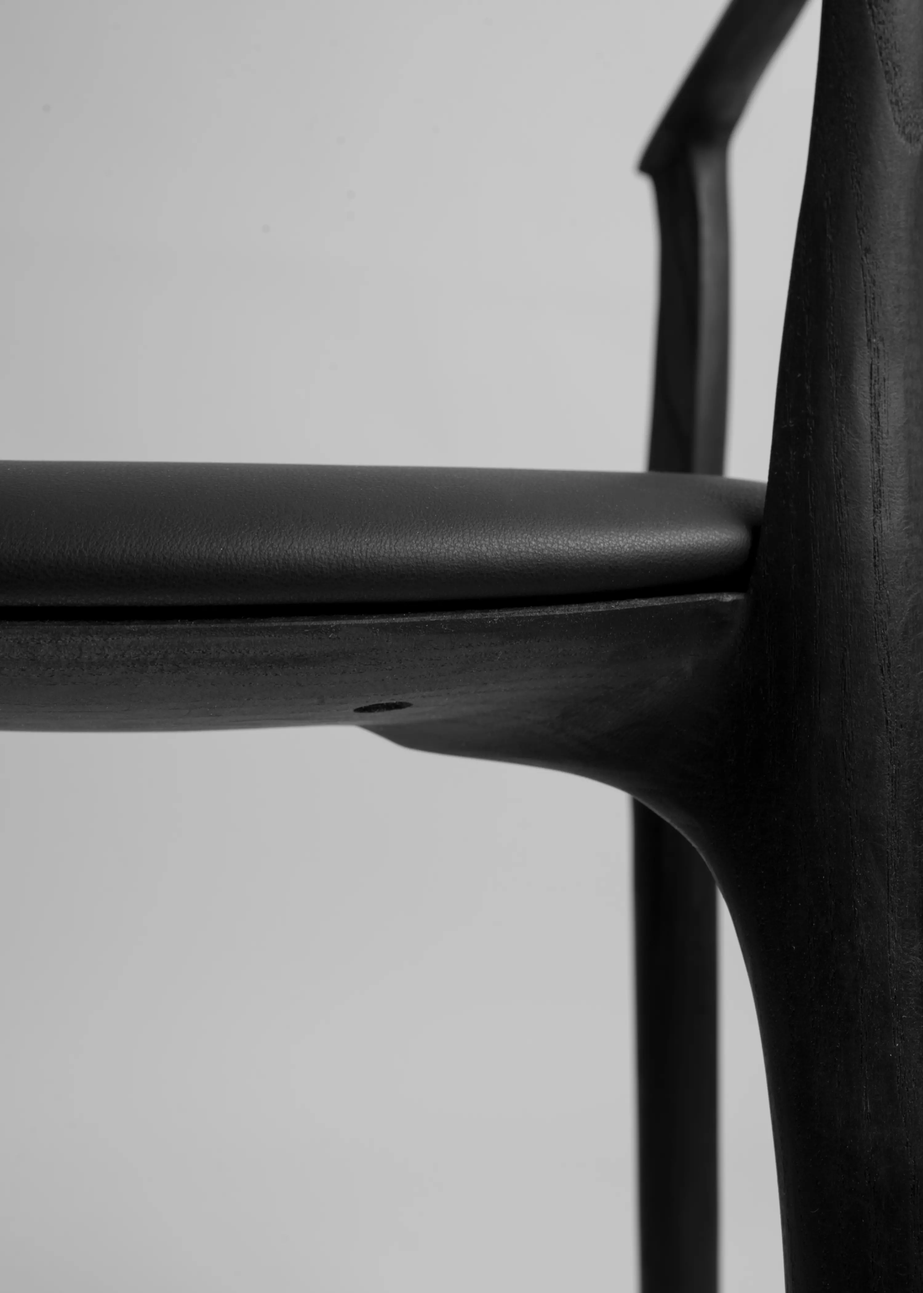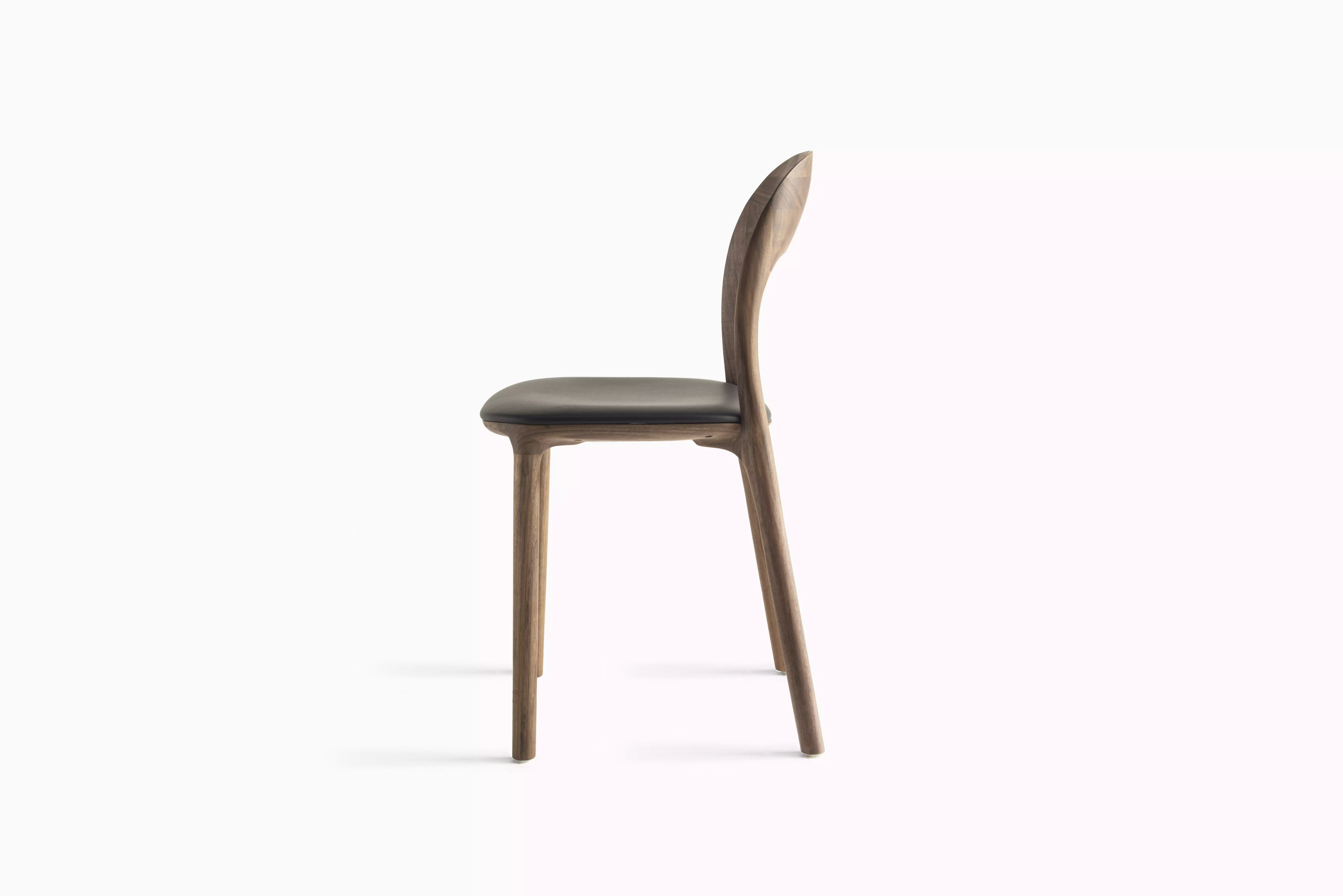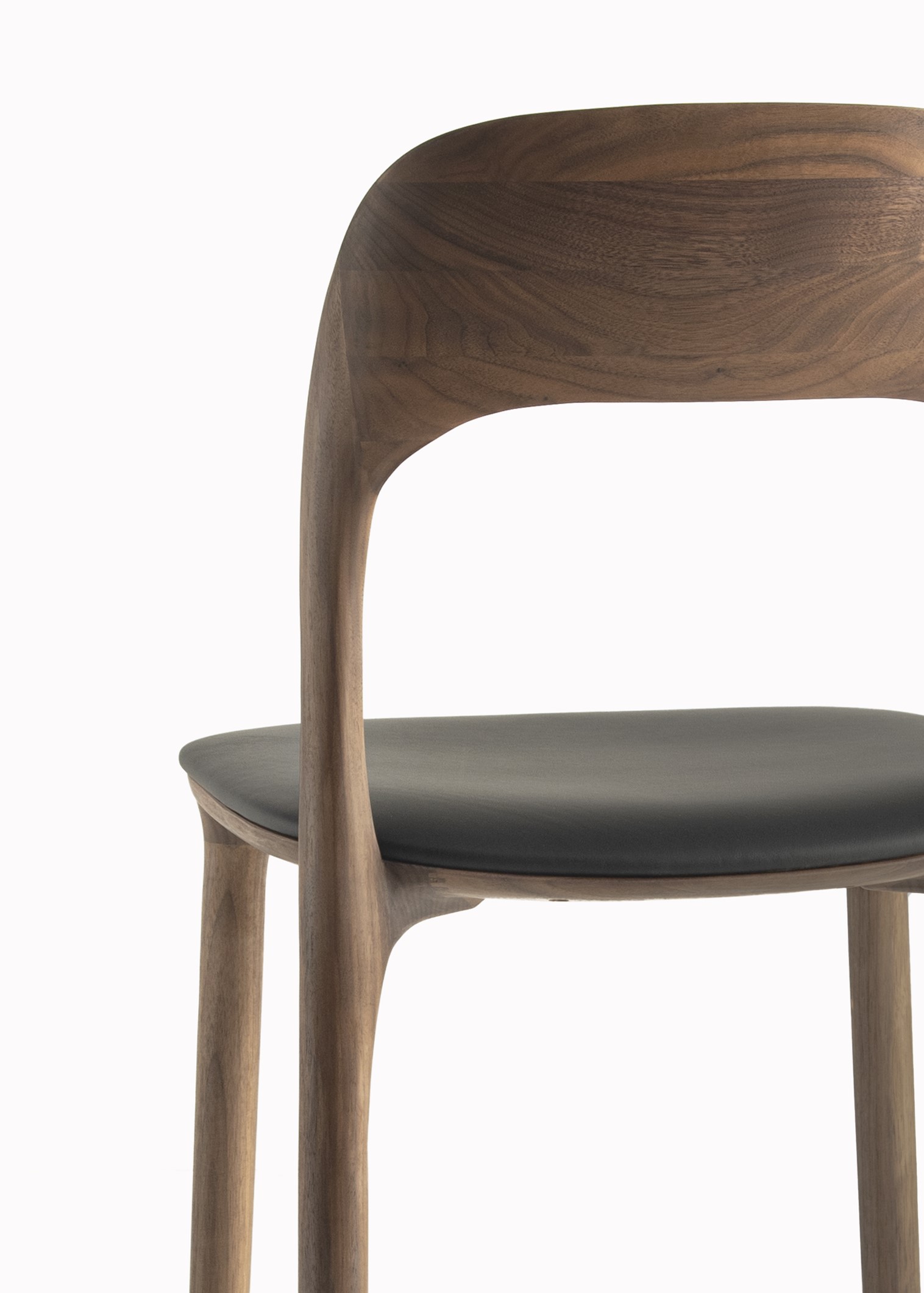 Elle wird unter Verwendung von CNC-Fräsen mit fünf Achsen, klassischer Schreinertechnik und Handfinish-Techniken hergestellt. Der Stuhl ist darauf ausgelegt, eine minimale Menge an Massivholzmaterial und Verbindungselementen zu verwenden, um optimale strukturelle Festigkeit zu erreichen.