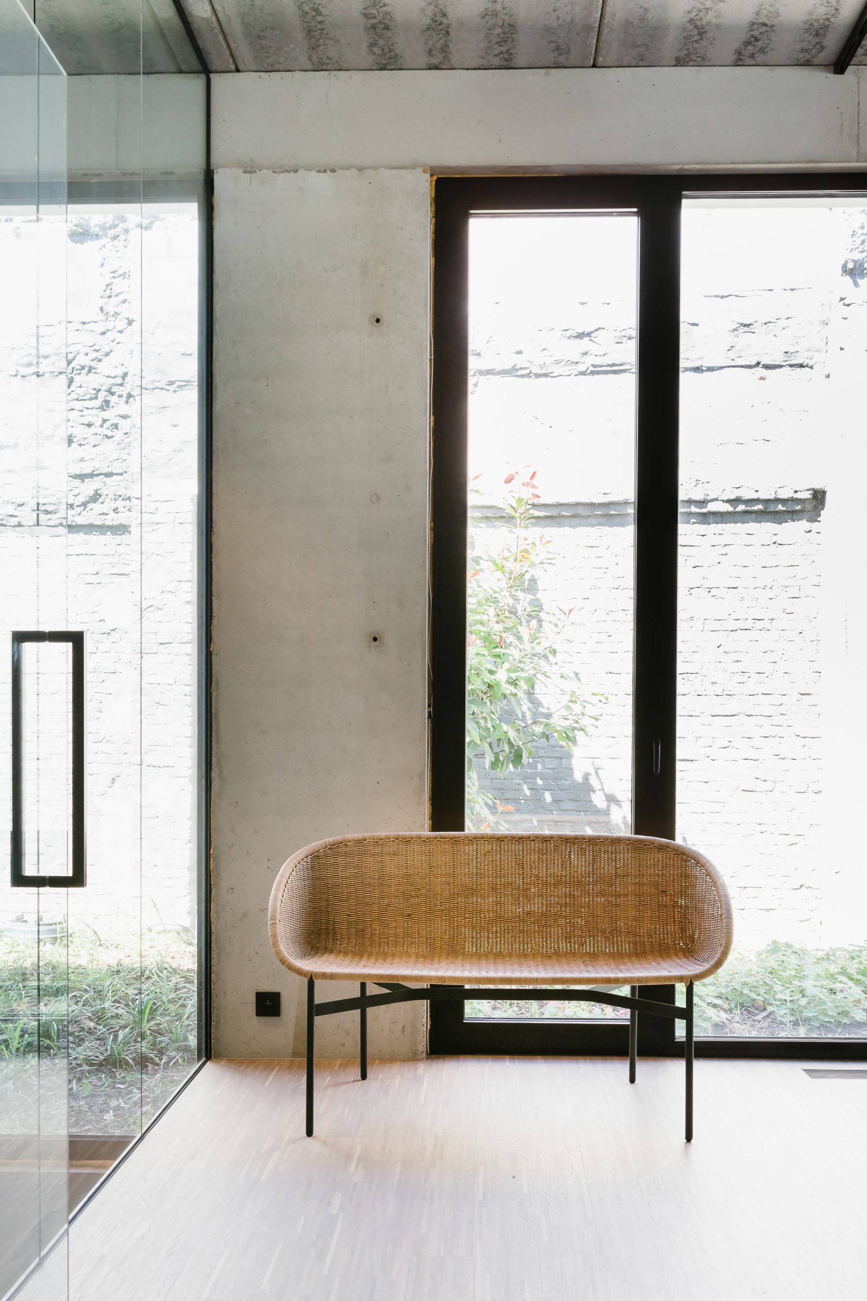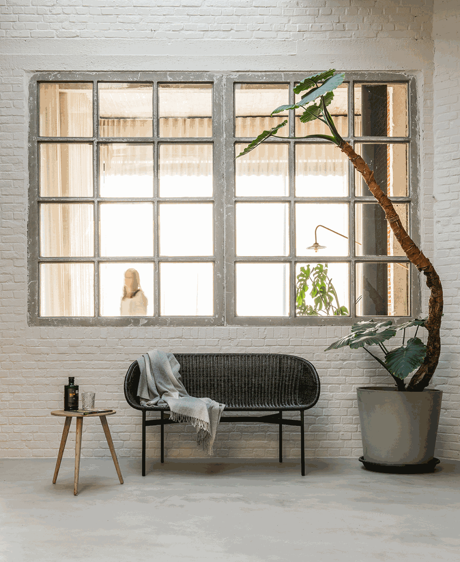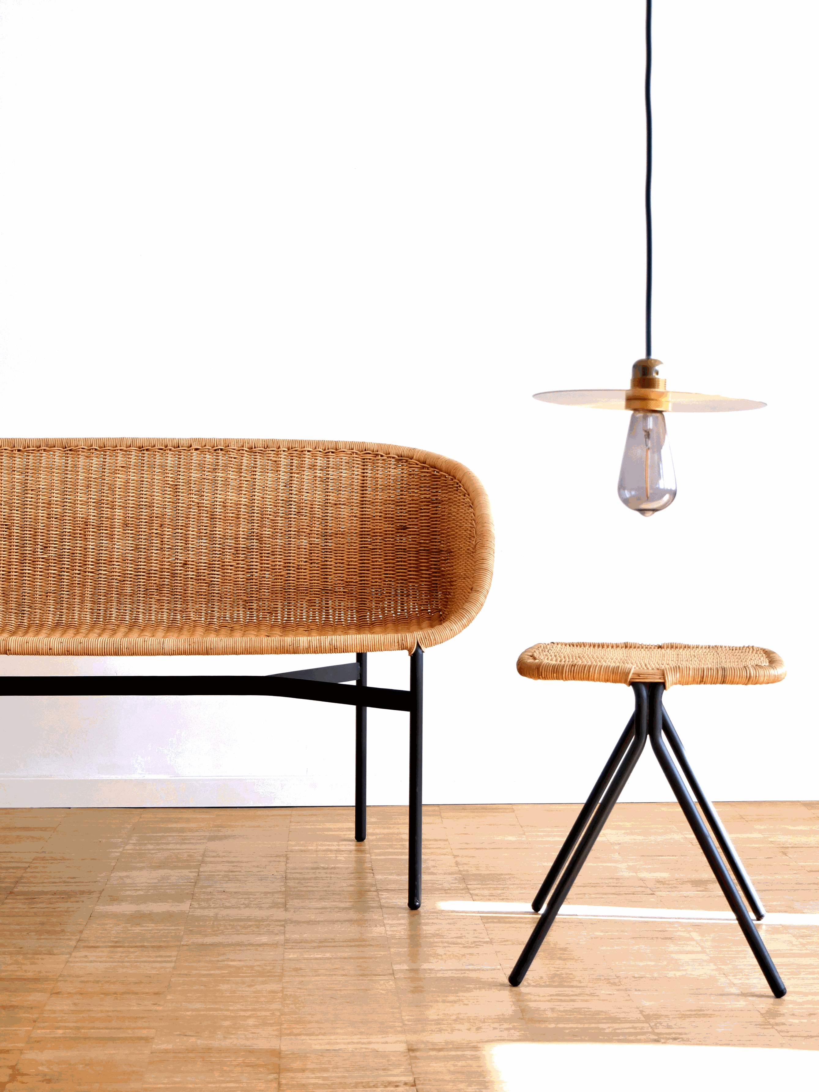 Eine stabile, doppelt verstärkte Grundkonstruktion aus pulverbeschichtetem Stahl und die in Handarbeit hergestellte Sitzfläche aus veredeltem Rattan sind die beiden Komponenten dieser Design Bank. Das Naturmaterial Rattan Slimit entfaltet seine Wirkung auf der großzügigen Sitzfläche, die durch die Flechtart entstehenden Schattierungen machen den Rattan zu einem lebendigen und authentischen Werkstoff. Organsiche Formen und industrieller Charme geben sich hier die Hand und lassen ein Möbelstück entstehen, das sich durch Gemütlichkeit, Modernität und Stilgefühl auszeichnet.