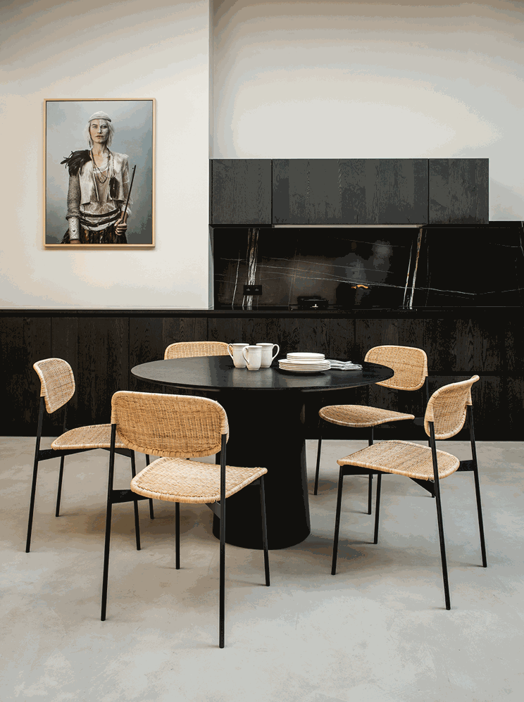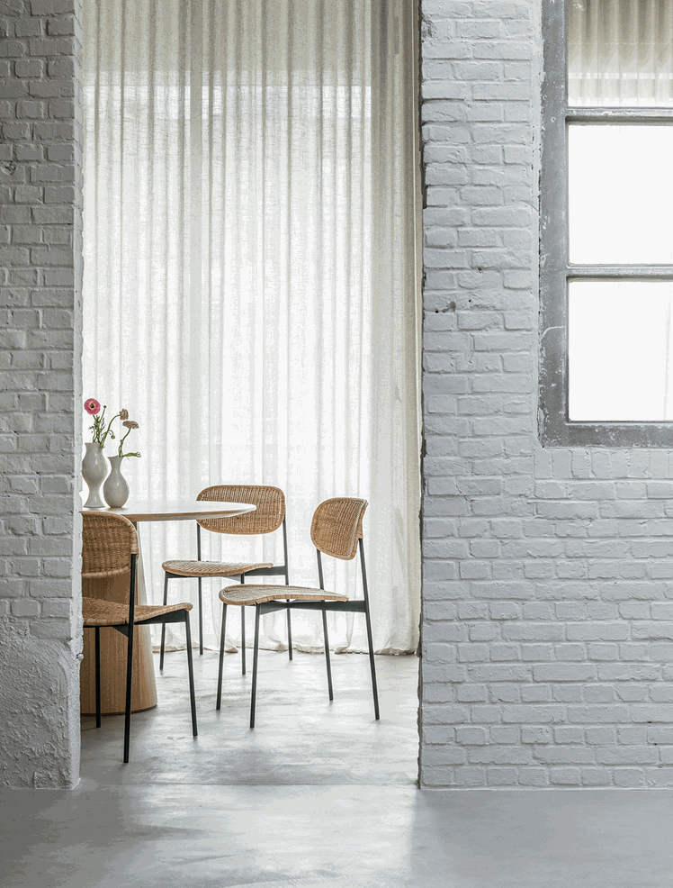 In Anlehnung an den traditionellen Rattanstuhl präsentiert GORM das Know-how von Feelgood Designs in der Kunst des Rattanwebens, indem es das volle Potenzial dieser uralten manuellen Technik ausschöpft. Hergestellt aus speziell ausgewählten pflanzlichen Fasern, verleiht dieser neue Stuhl einen einladenden und eleganten Look. Die Rückenlehne mit ihrer einhüllenden Kurve, perfekt umgesetzt, wurde mit maximaler Bequemlichkeit im Sinn gestaltet und lädt die Gäste ein, mit Freude ihren Platz am Tisch einzunehmen. Der hochbeständige, pulverbeschichtete Edelstahlrahmen trägt zur harmonischen, schwebenden Silhouette bei.Design Allan Nøddebo Material Rattan Peel5 mm breites, flaches Webmaterial aus der Außenhaut von Rattanstangen. Hellblonde Farbe mit gleichmäßiger Breite.Dieses Material entwickelt mit der Zeit unter Lichteinwirkung eine Honigpatina.Nur für den Innenbereich geeignet.FarbenGestell - Stahl schwarz pulverbeschichtet (Charcoal)Sitzchale - Peel Rattan Natur Maße Breite 64 cm Tiefe 54 cm Höhe 77 cm Sitzhöhe 45 cm Gewicht 10,5 kg Foto Urheberrecht: Feelgood Design, Lodder