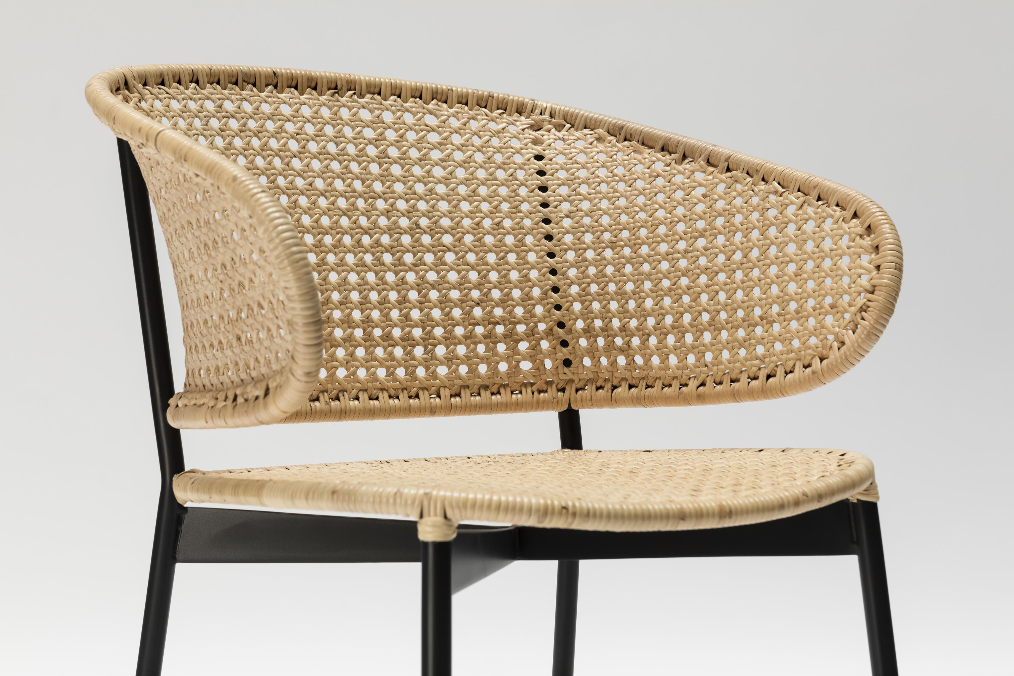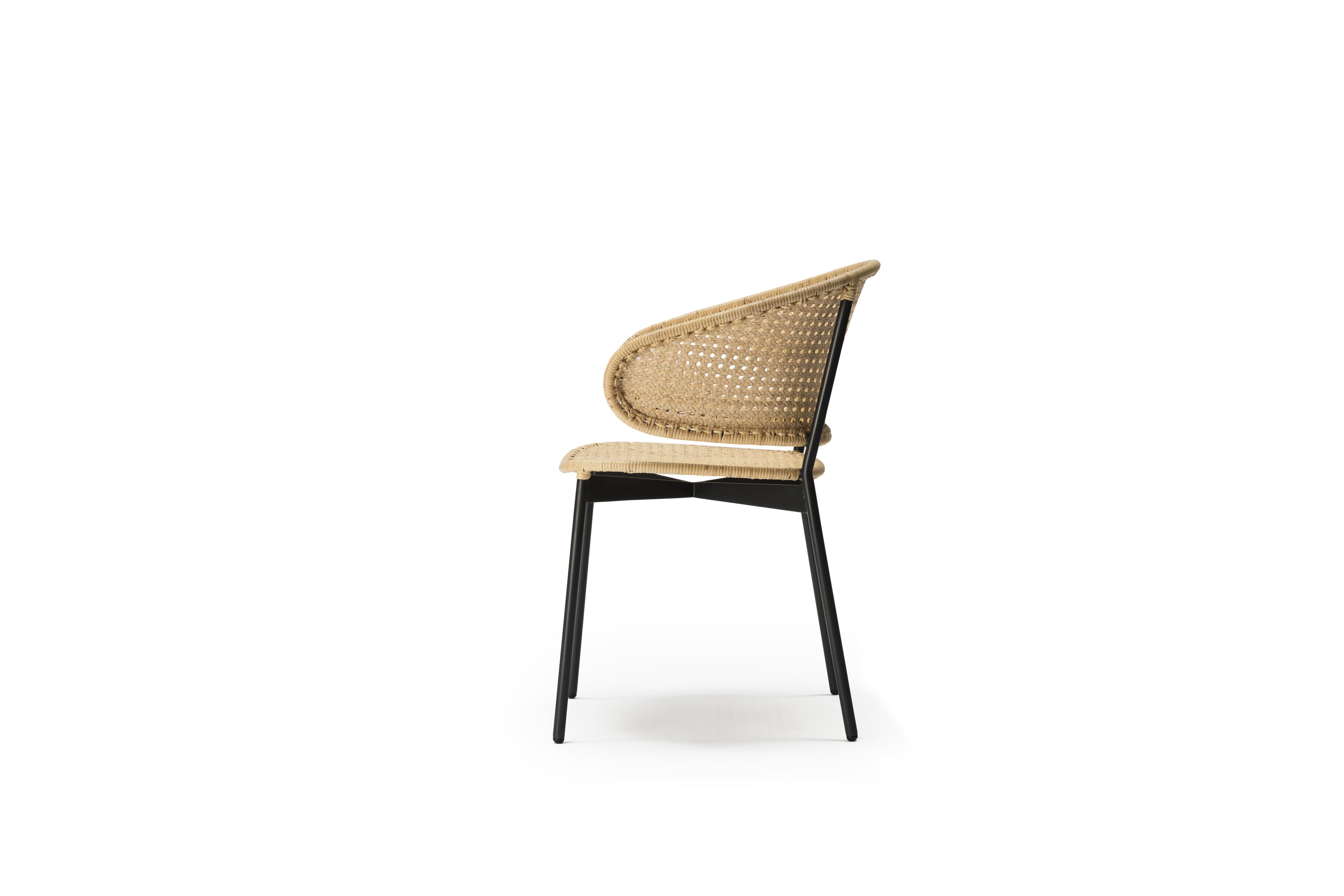 Hergestellt aus speziell ausgewählten pflanzlichen Fasern, verleiht dieser neue Stuhl einen einladenden und eleganten Look.